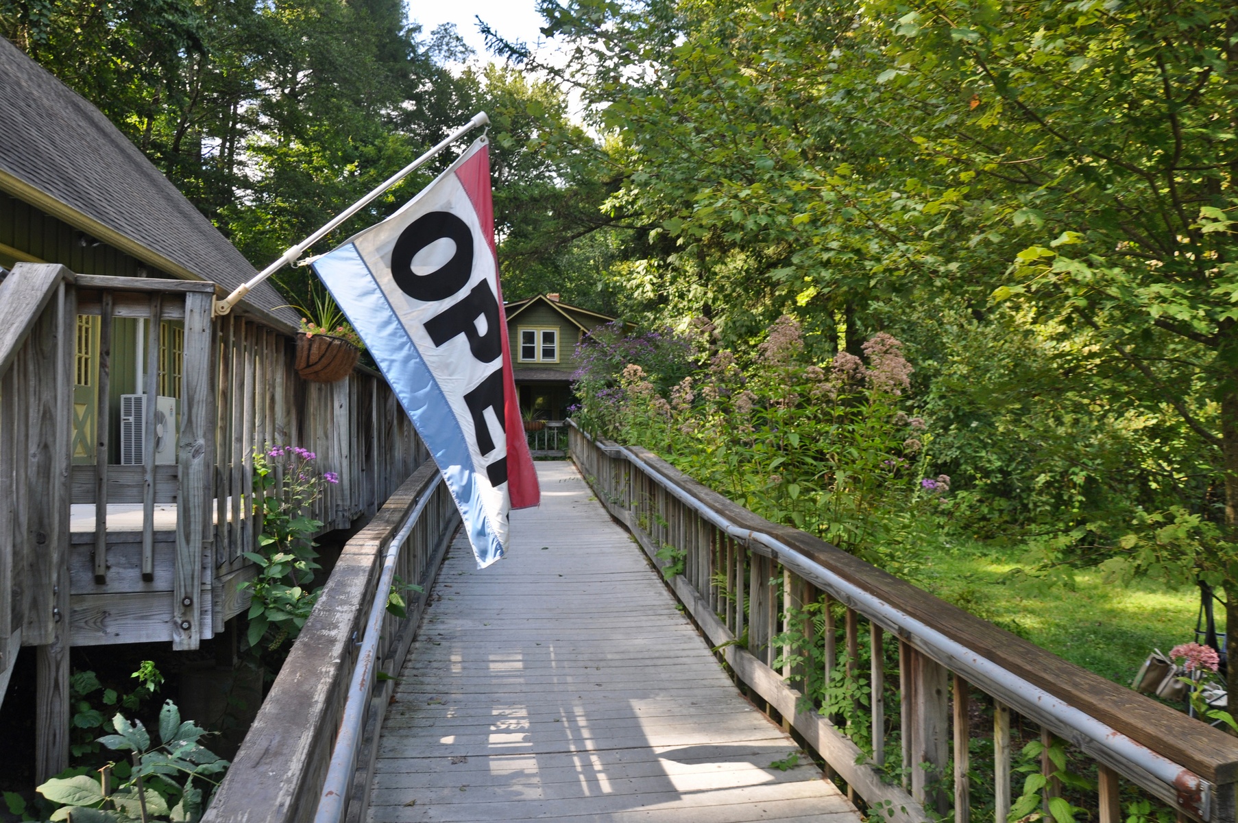 There are so many flags with 'Open' sign with 3 colors. There's a theory those are in sync with colors of US flag. I'm not sure whether it's true. Those flags are everywhere.
