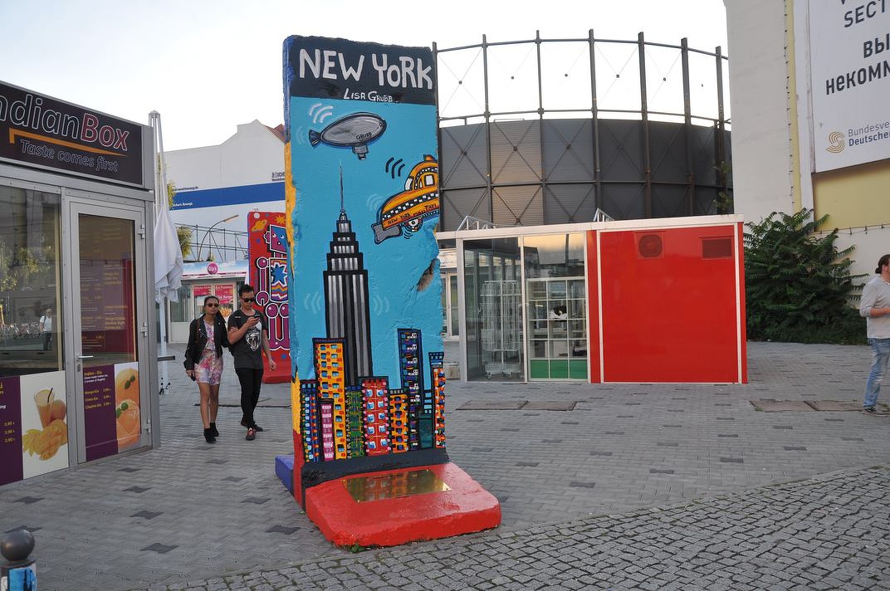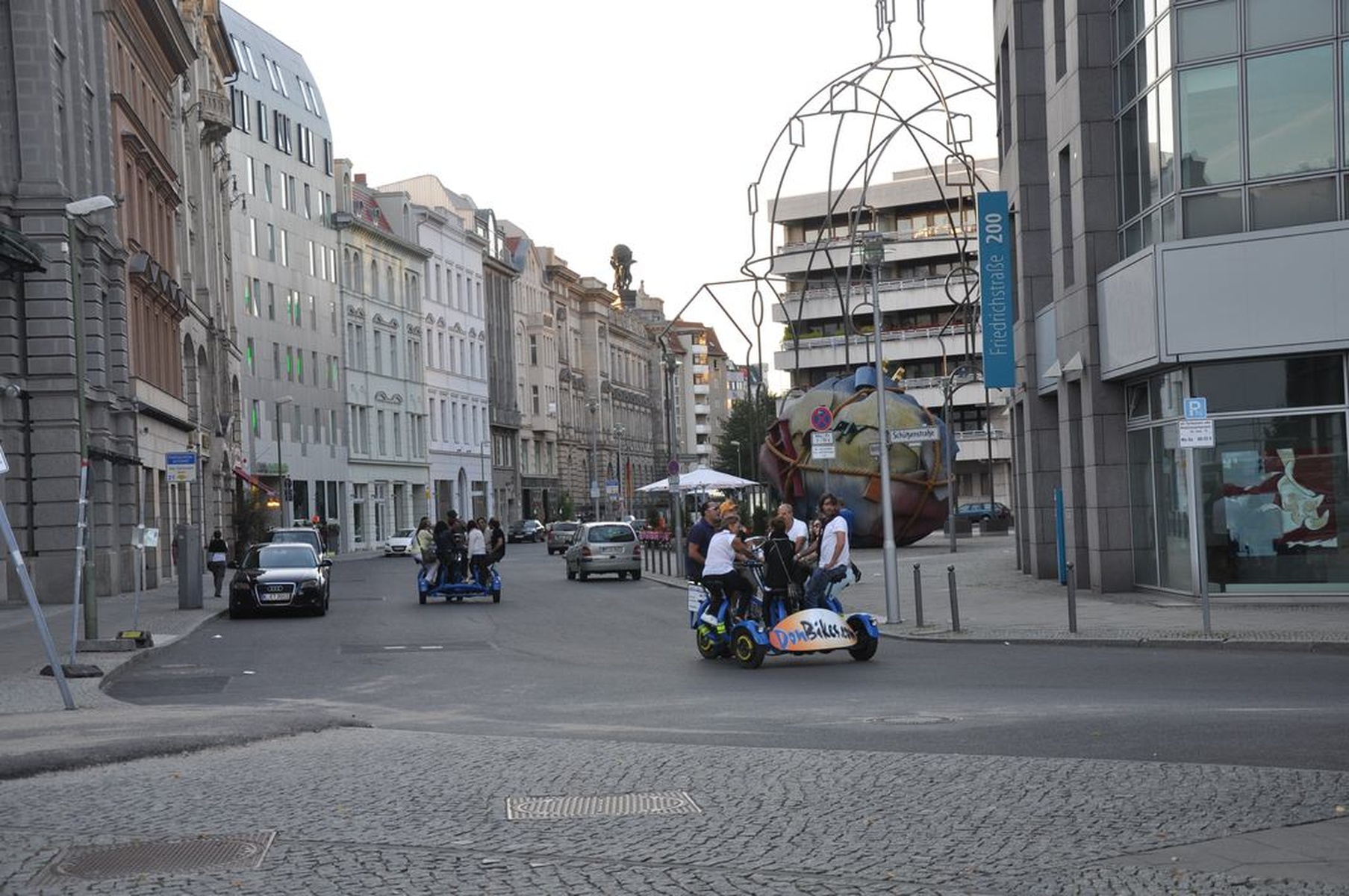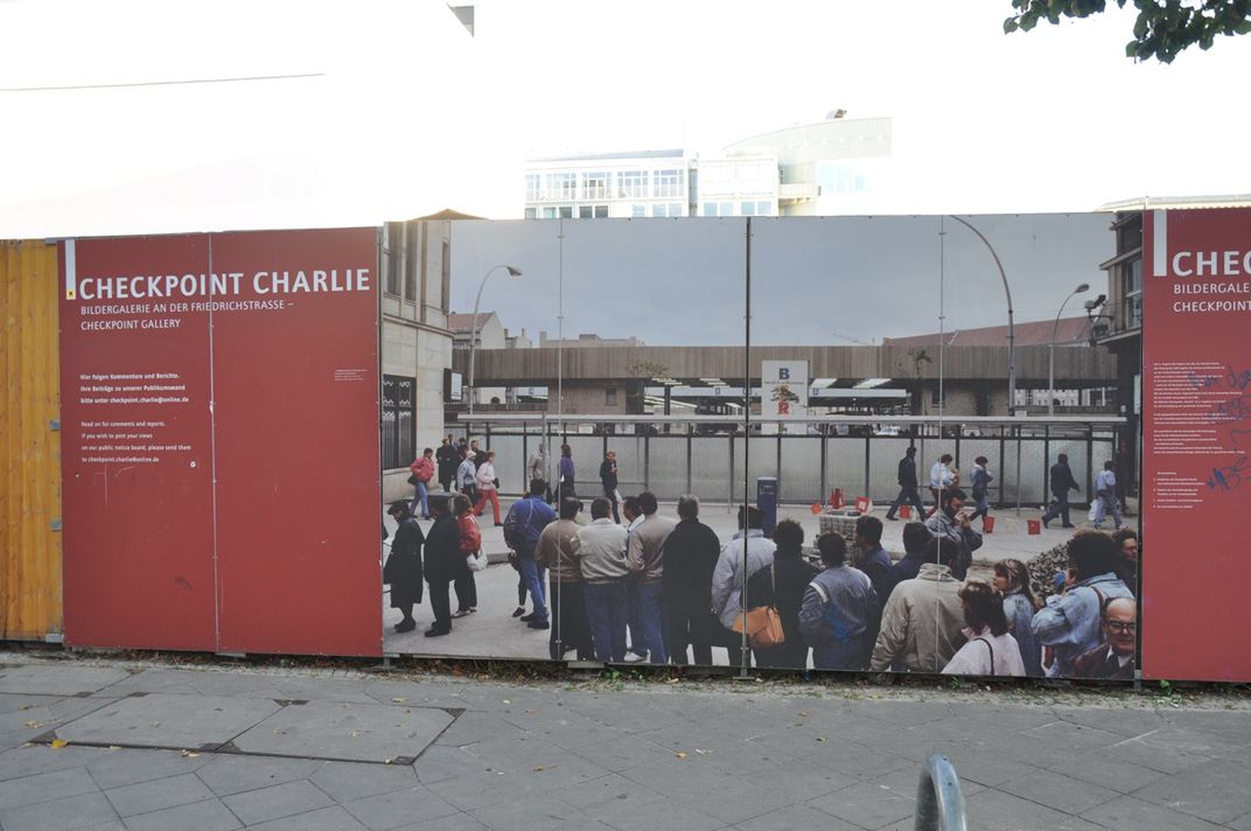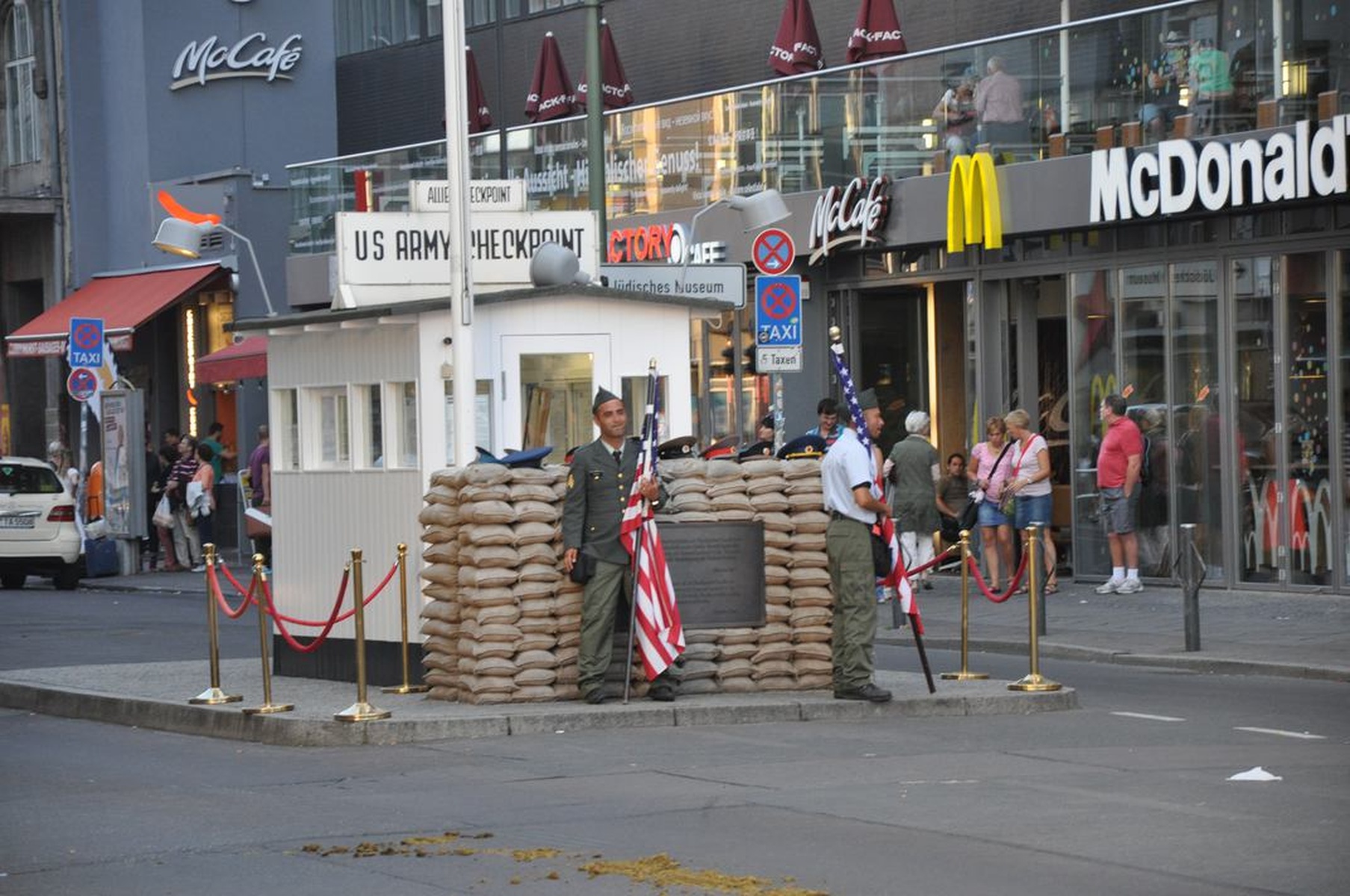 One of the most famous postwar sightseeing places is The Berlin Wall. Thus I decided to include it into my must visit list. There are several places where I could do it. Far away from the city centre (where almost nothing except the wall, but it's 1.5km long), or at Checkpoint Charlie, which is close to centre and it's convenient to get there by bicycle. The name comes not because of some guy Charlie, but cause of the naming convention: Americans named checkpoints in alphabetical order. So it was Alfa, Bravo, next is Charlie. There is even museum nearby. And soldiers who still are there. Looks like somebody forgot to notify them that the time of the wall is gone =)