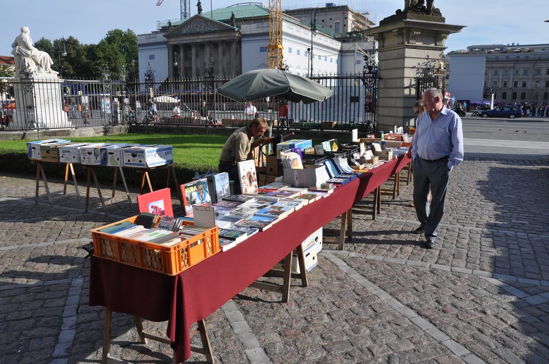 Next to that place there was a book bazaar. Even some books in English. I didn't find something interesting for me though. The prices were really shopping friendly: I saw books for 2 and even 1.5 euro. Nearby there was a barrel organ player. However it was not a single place in Berlin where I saw a guy like this.