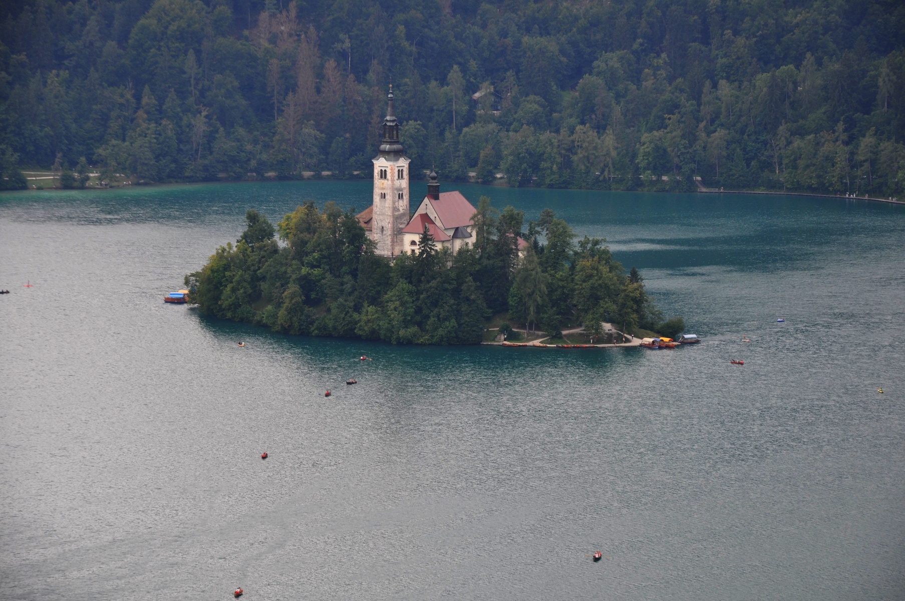 In the lake centre there is the only island in the whole country. They build a church there and it looks amazing.