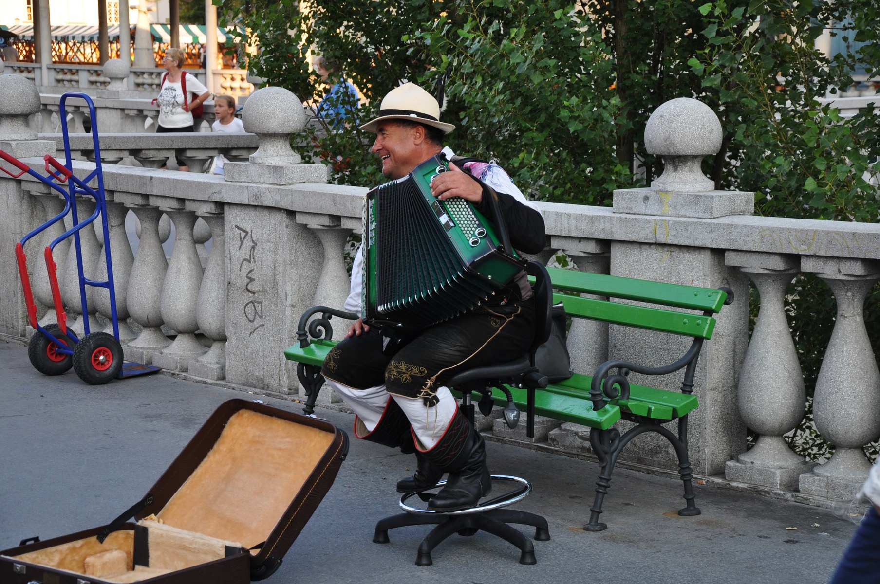 Ljubljana is a capital of Slovenia. The city is quite small, just around 250 thousand people. Though there are only 2 millions in the entire country. In the city center there are a lot of musicians. On every inch you can find a guy with accordion or even quartet.