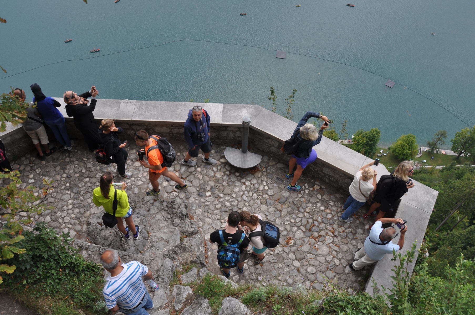 The castle itself is located on the hill and you can see from the top Alps, the lake and tourists who’s trying to find the best place for a picture.