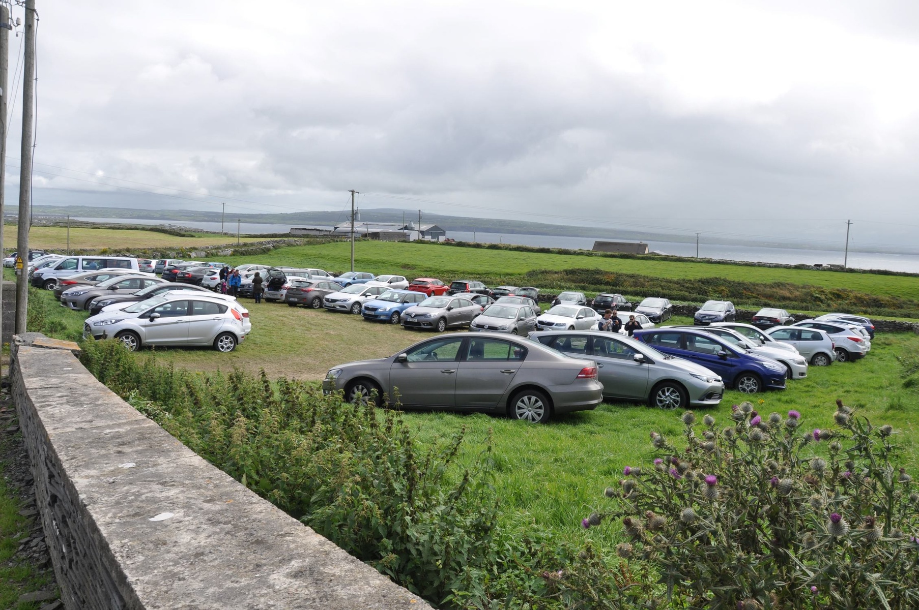 The most popular tourist attraction in Ireland is cliffs. Every year here come more than a million people. Sometimes there are so many visitors, that sometimes there is not enough space on parking (which costs 6 euro btw), in this case people are redirected to find parking somewhere else. Local farmers figured out that it's easy to make money on it. So they suggest to park a car on their field just for 2 euro.