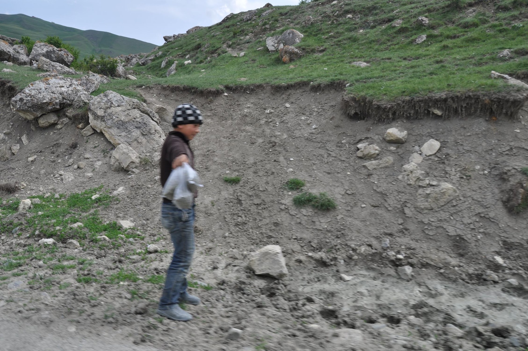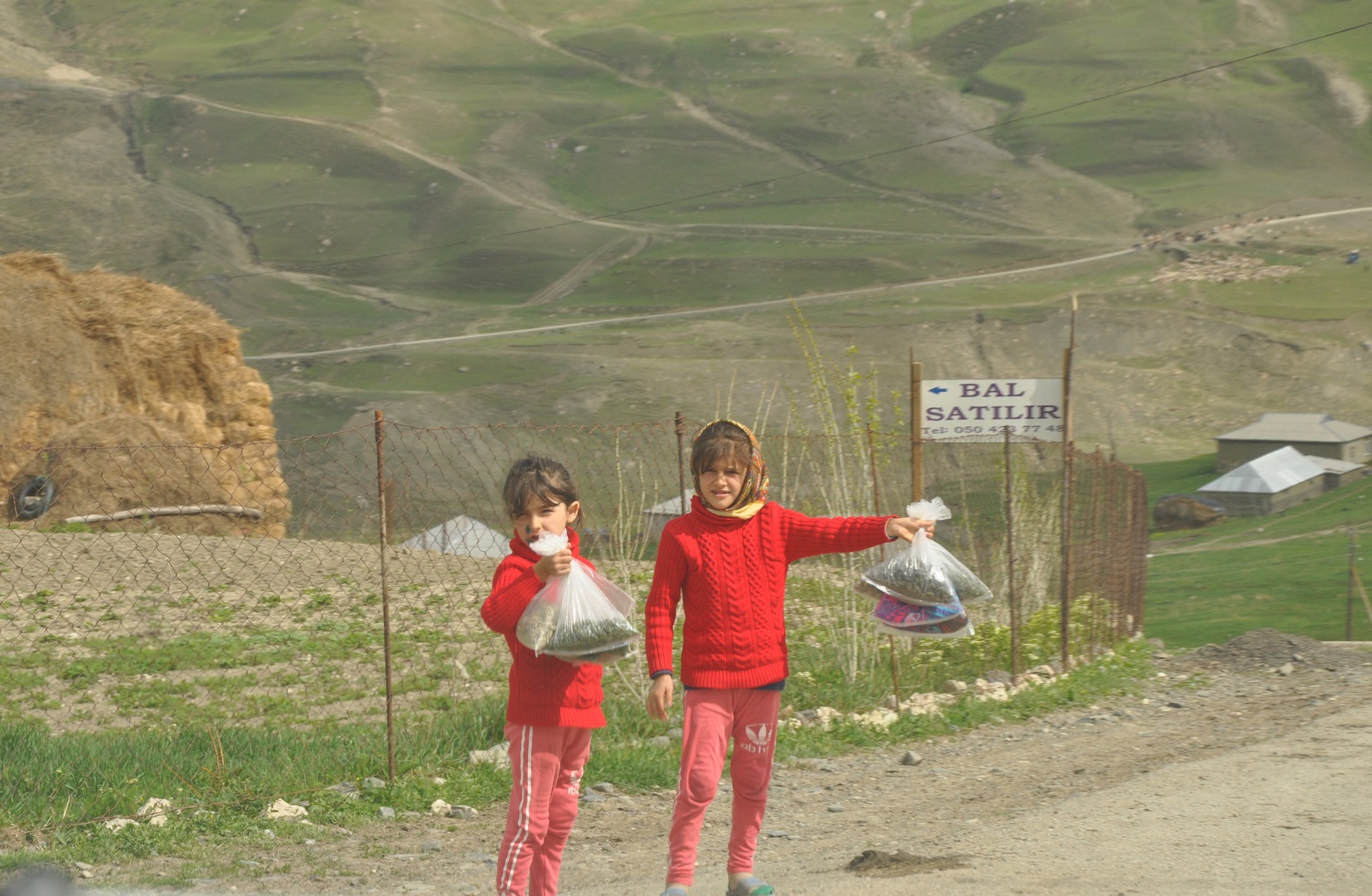 We noticed many kids selling plastic bags with dried grass along the road. I can't tell what the grass it is (and is it), but these kids are numerous. And all children here (even not grass-sellers) are very shy of photography.