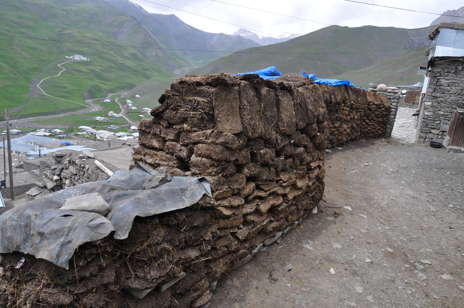 The village is as high as 2000 m above the sea-level, and there are virtually no trees here. While winters are severe - temperature drops to -40C sometimes. Locals use dried animal's excrements as a fuel - no bother with wood or coal delivery.