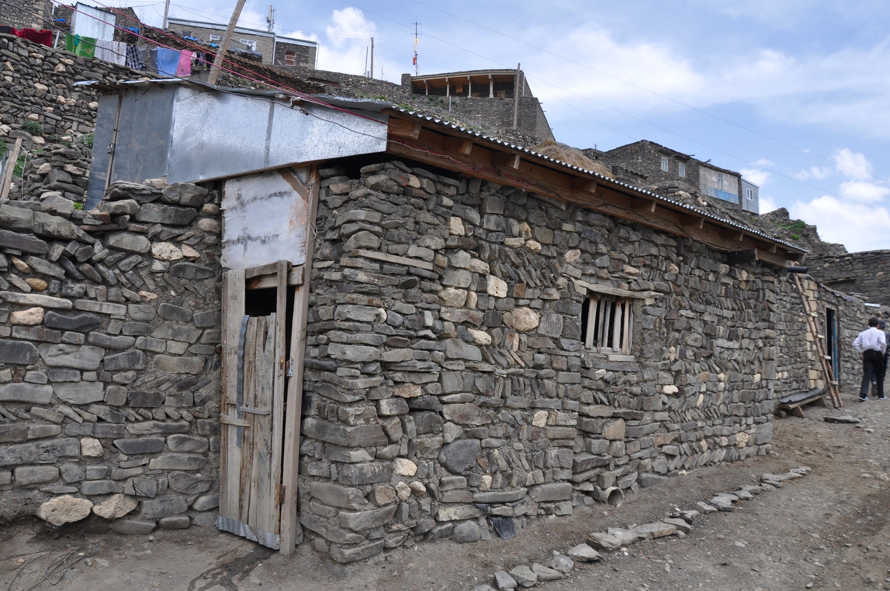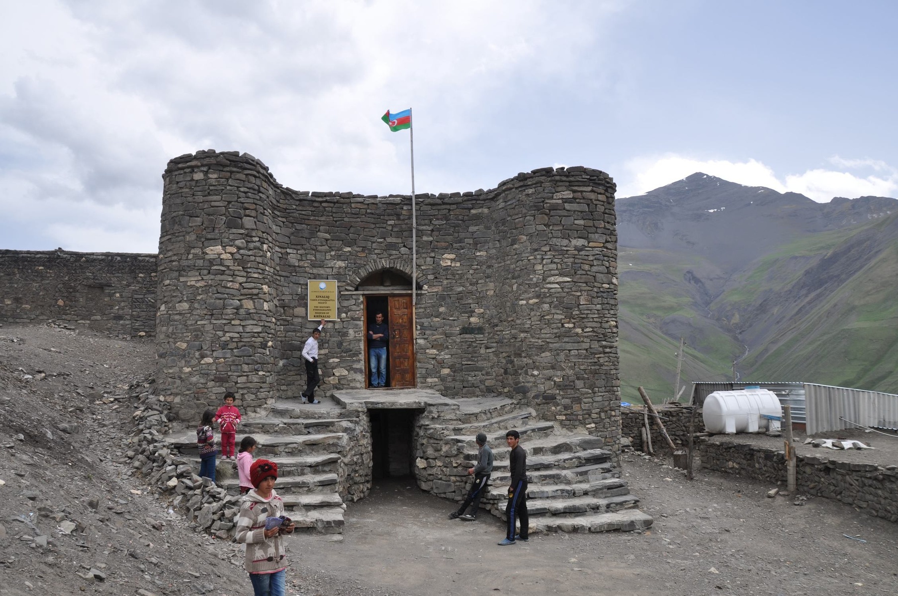 Beyond this weird looking barrier, Xinaliq can be seen at last. It is famous for it's original Xinaliq language that is spoken here (and nowhere else in the world) among near 2000 inhabitants. Also they jealously keep their distinctive customs.