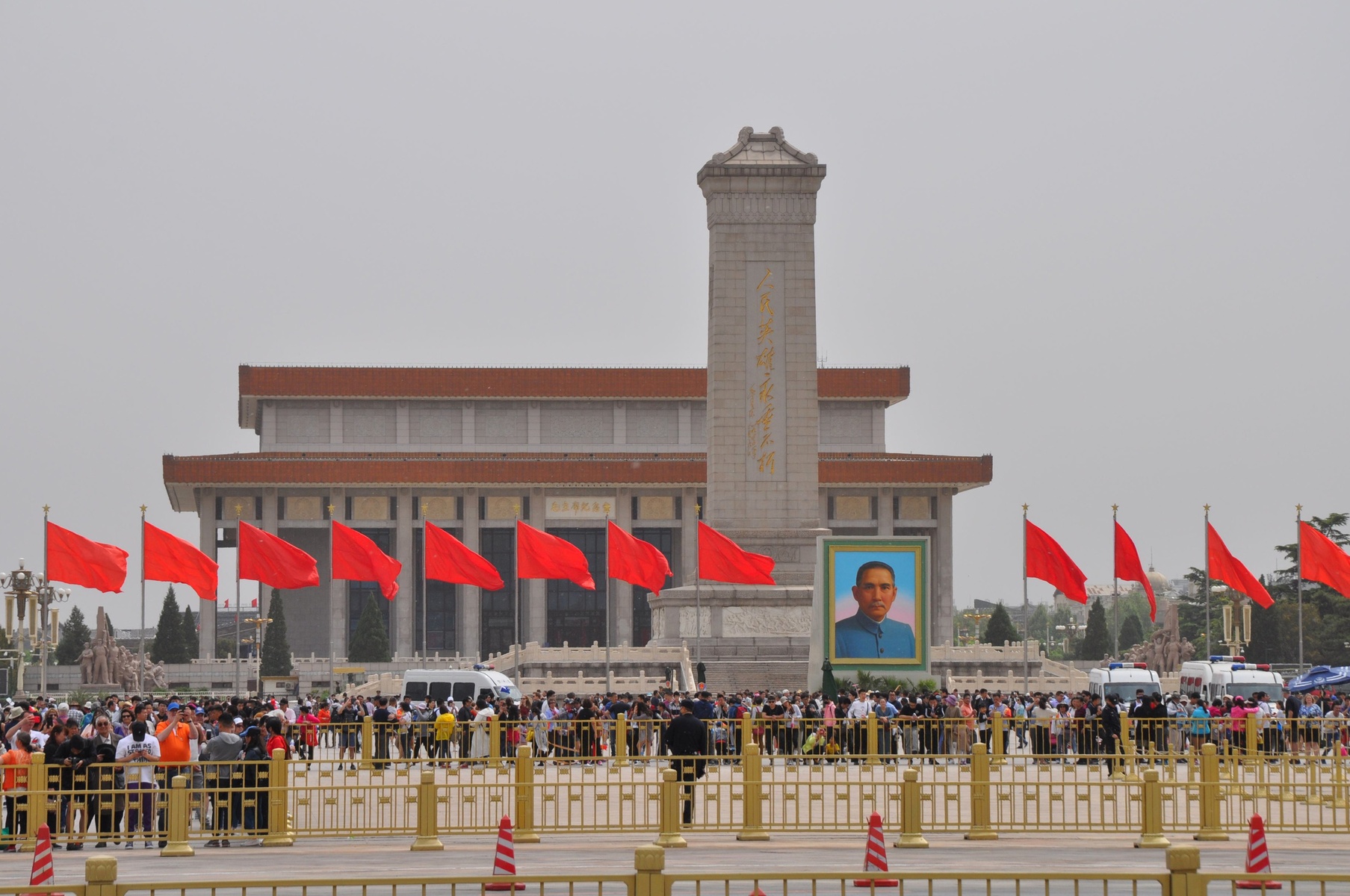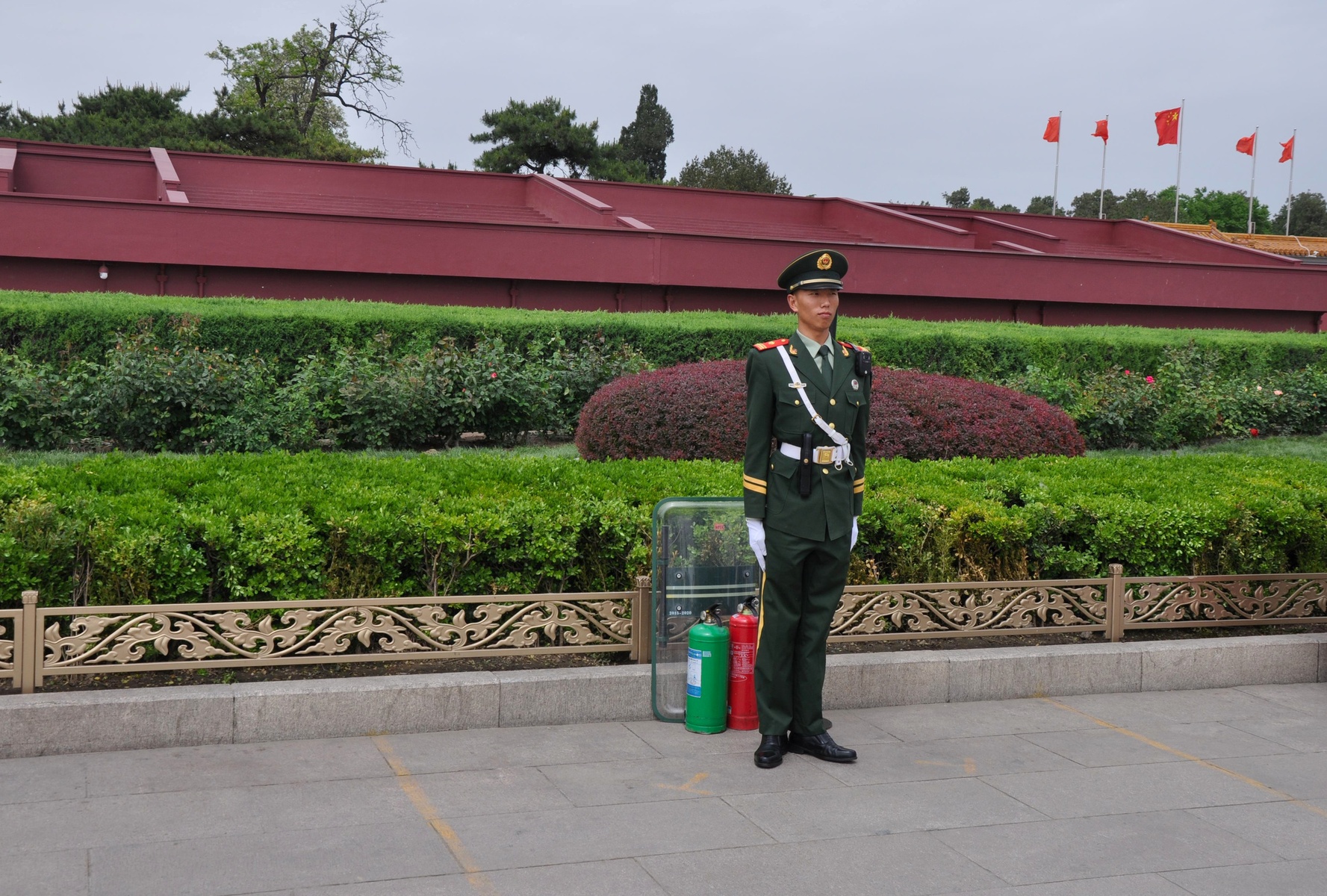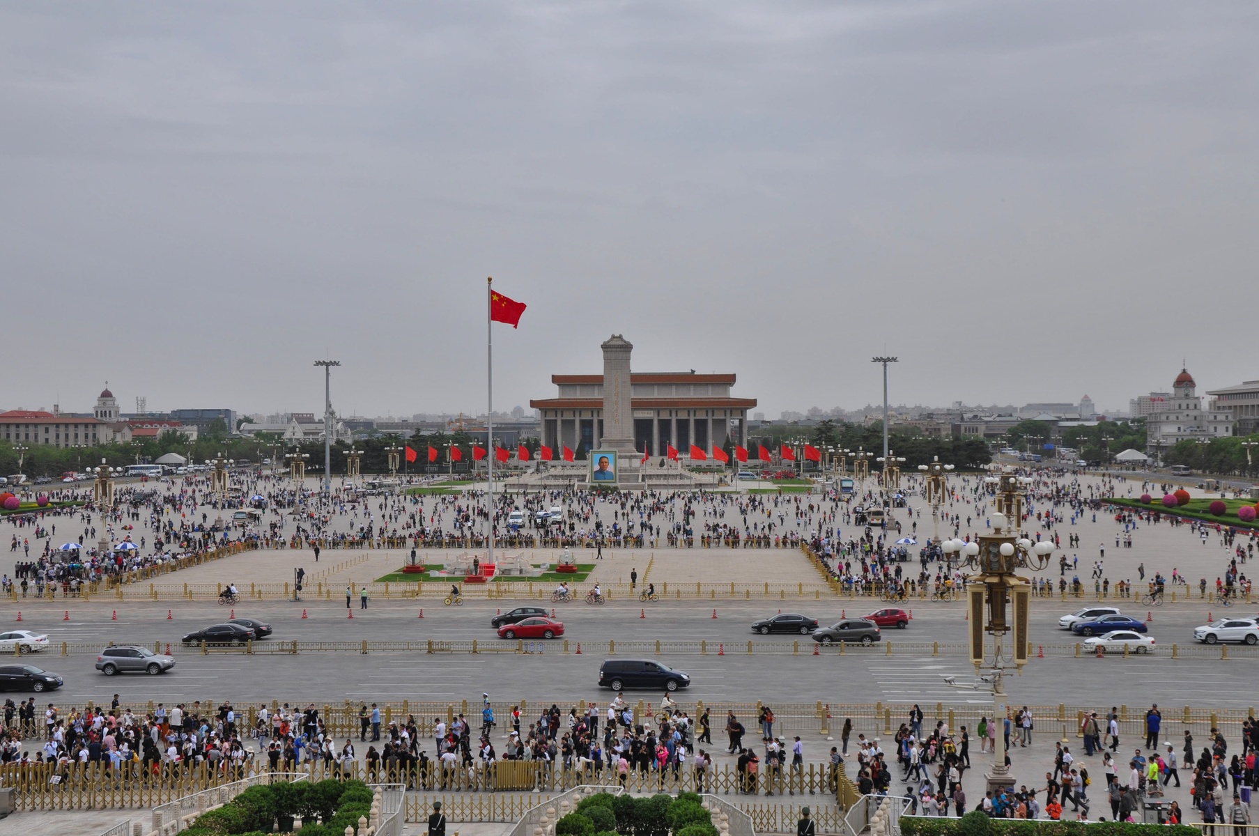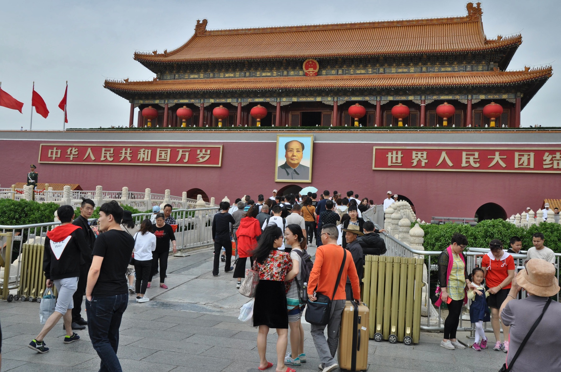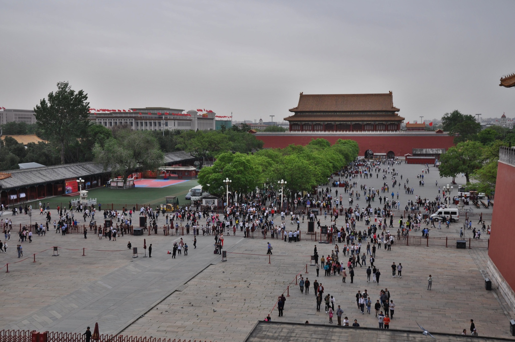 Tienanmen square. Right in front of the entrance to the Forbidden city. Due to 1st of May celebration metro exits to the square are closed. I could get there only after yet another security and ID checks (for foreigner it's enough just to show the passport, while for locals they write it down).