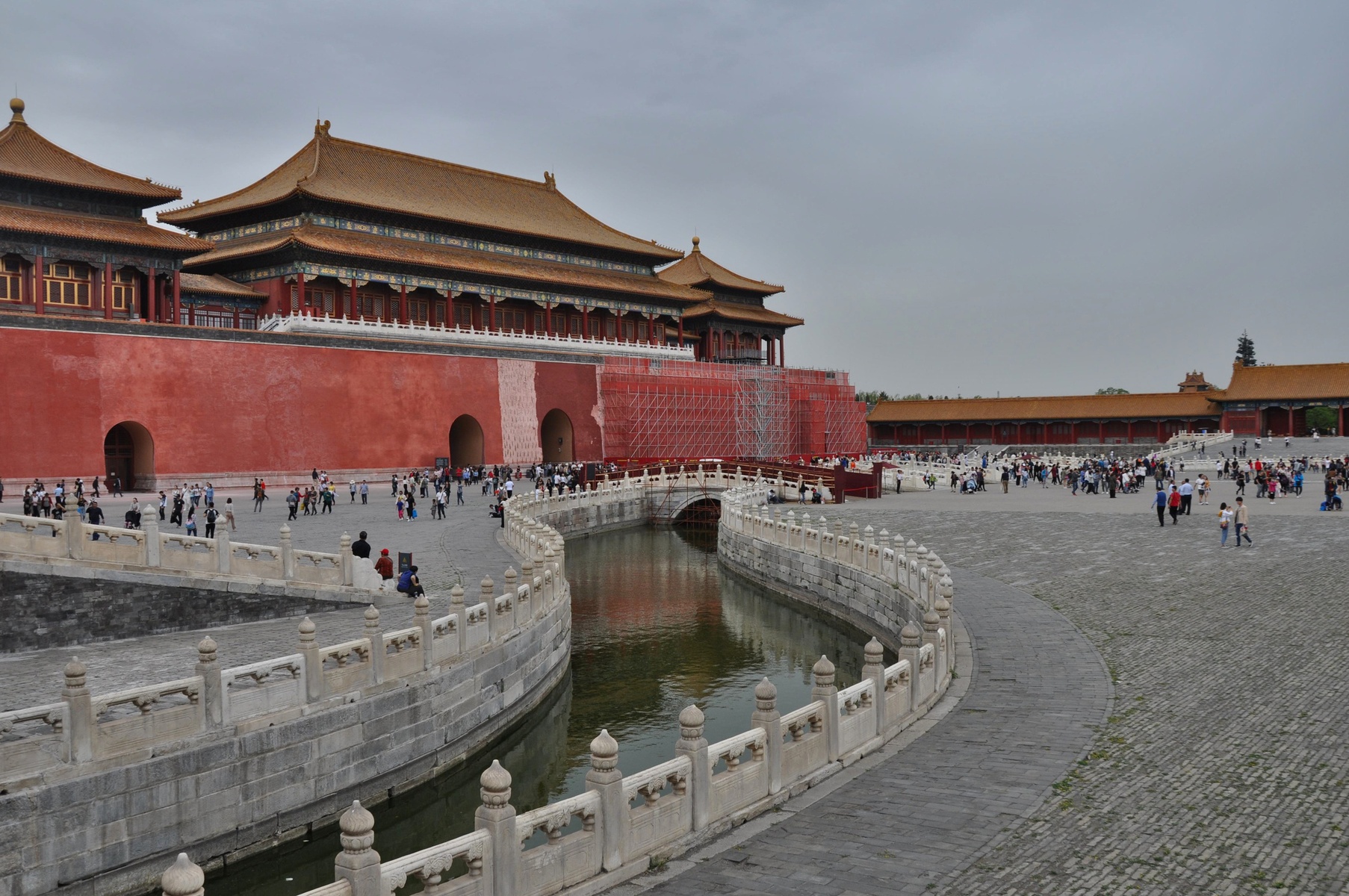 Forbidden city is surrounded by huge moat almost 50m width. The ground from the moat put into a big hill behind the castle. According to fen-shew it protects the city from the evil.