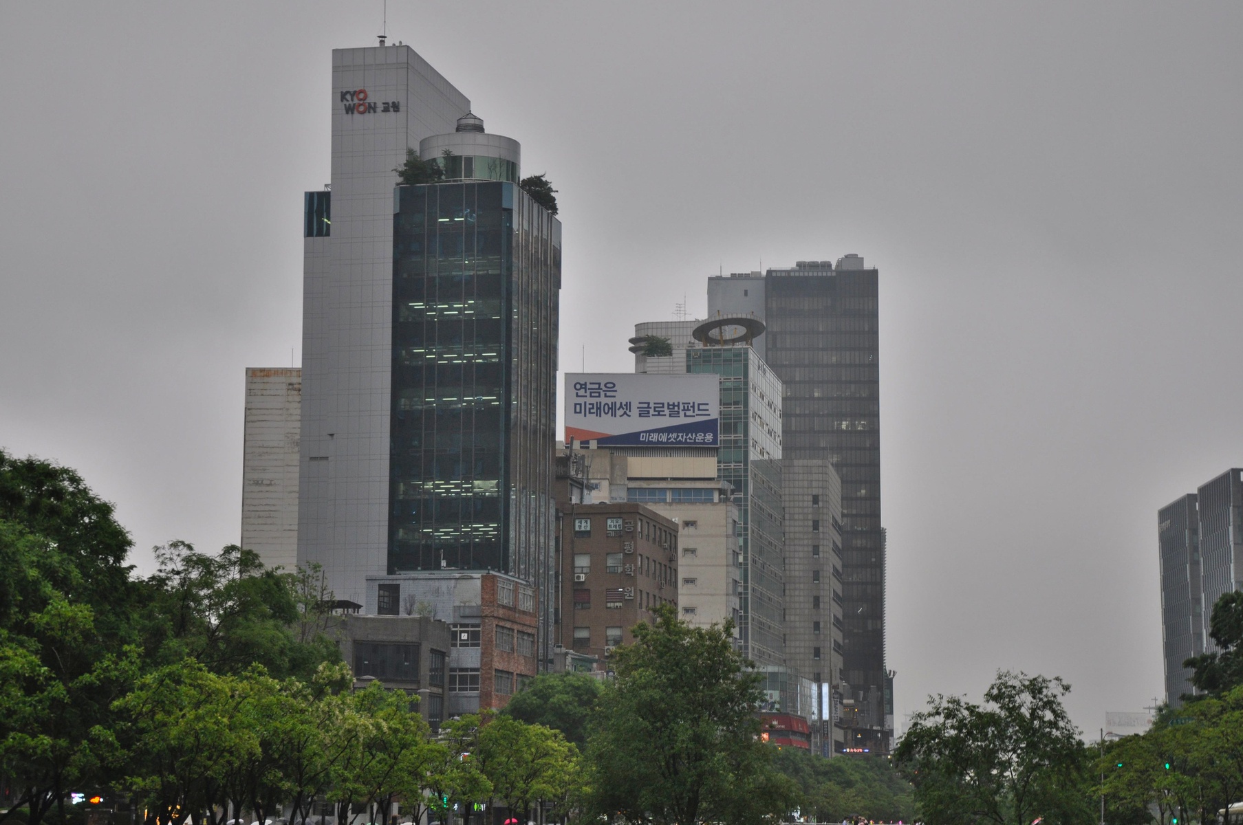 Повсюду очень много огромных небоскребов. Но они не кучкуются все в одном месте, а равномерно размазан по всему городу.