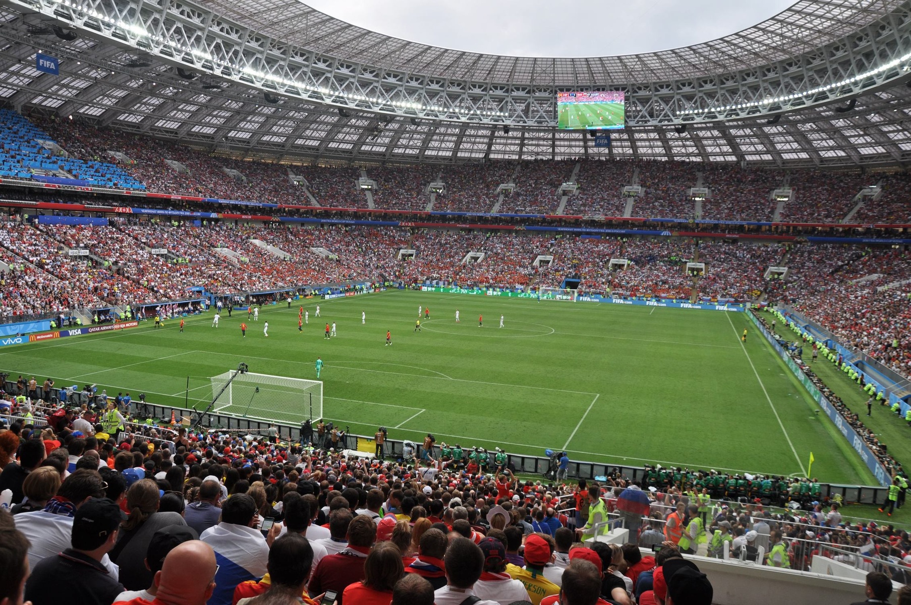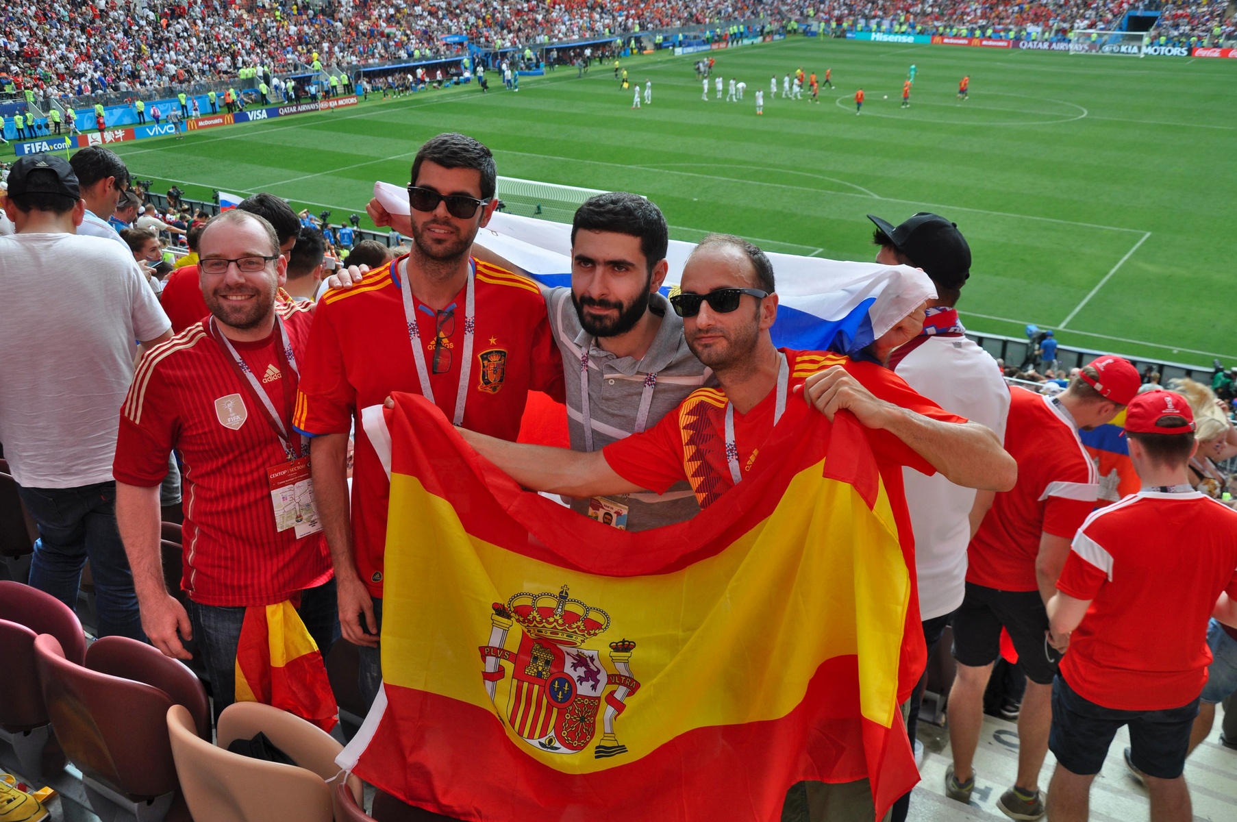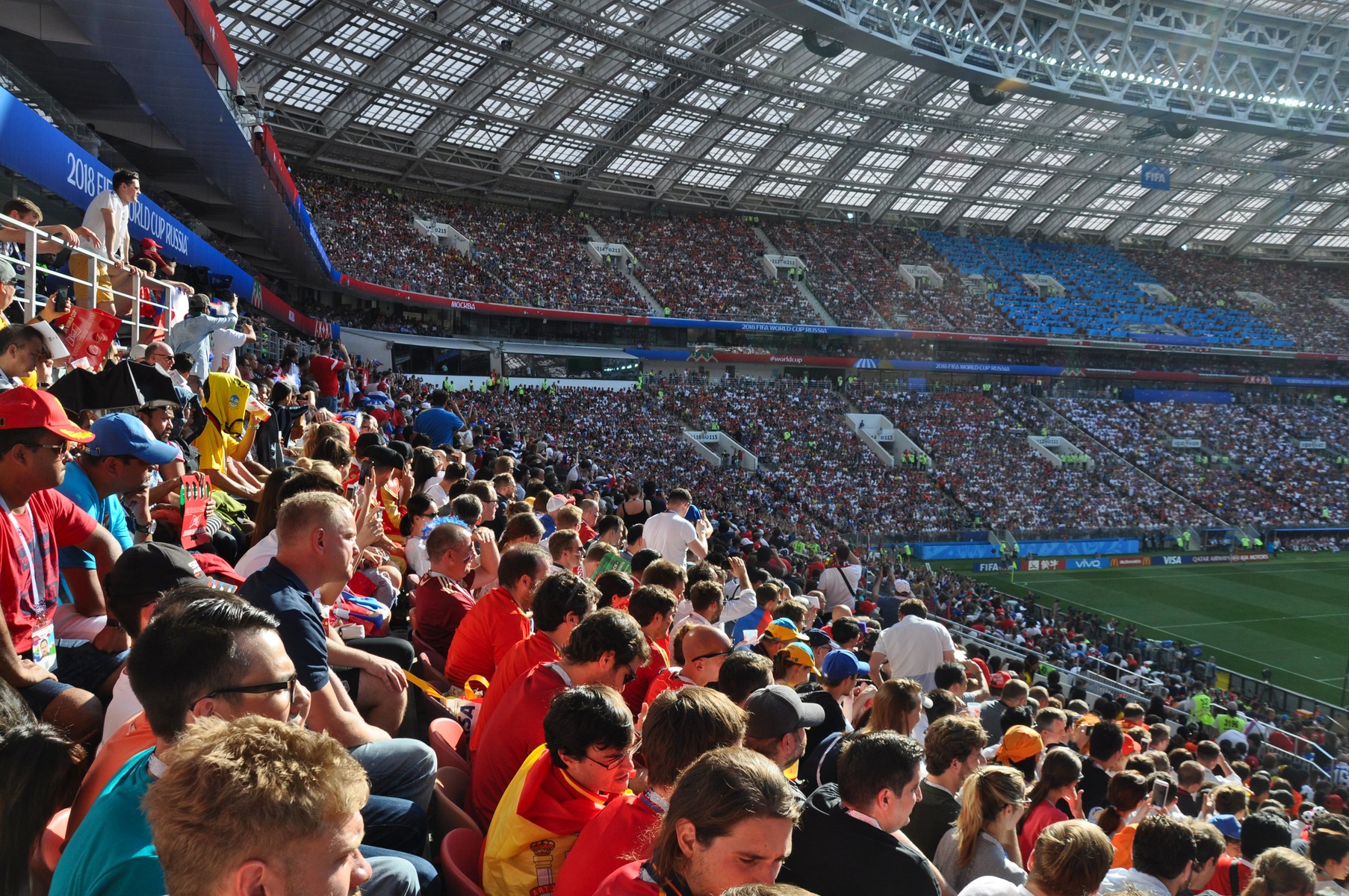 Совершенно неожиданно для себя я попал на 1/8 финала чемпионата мира, где Россия играла с Испанией. Билеты я купил задолго до начала чемпионата и абсолютно не представлял, кто именно окажется на поле. И уж точно не ожидал увидеть там Россию.