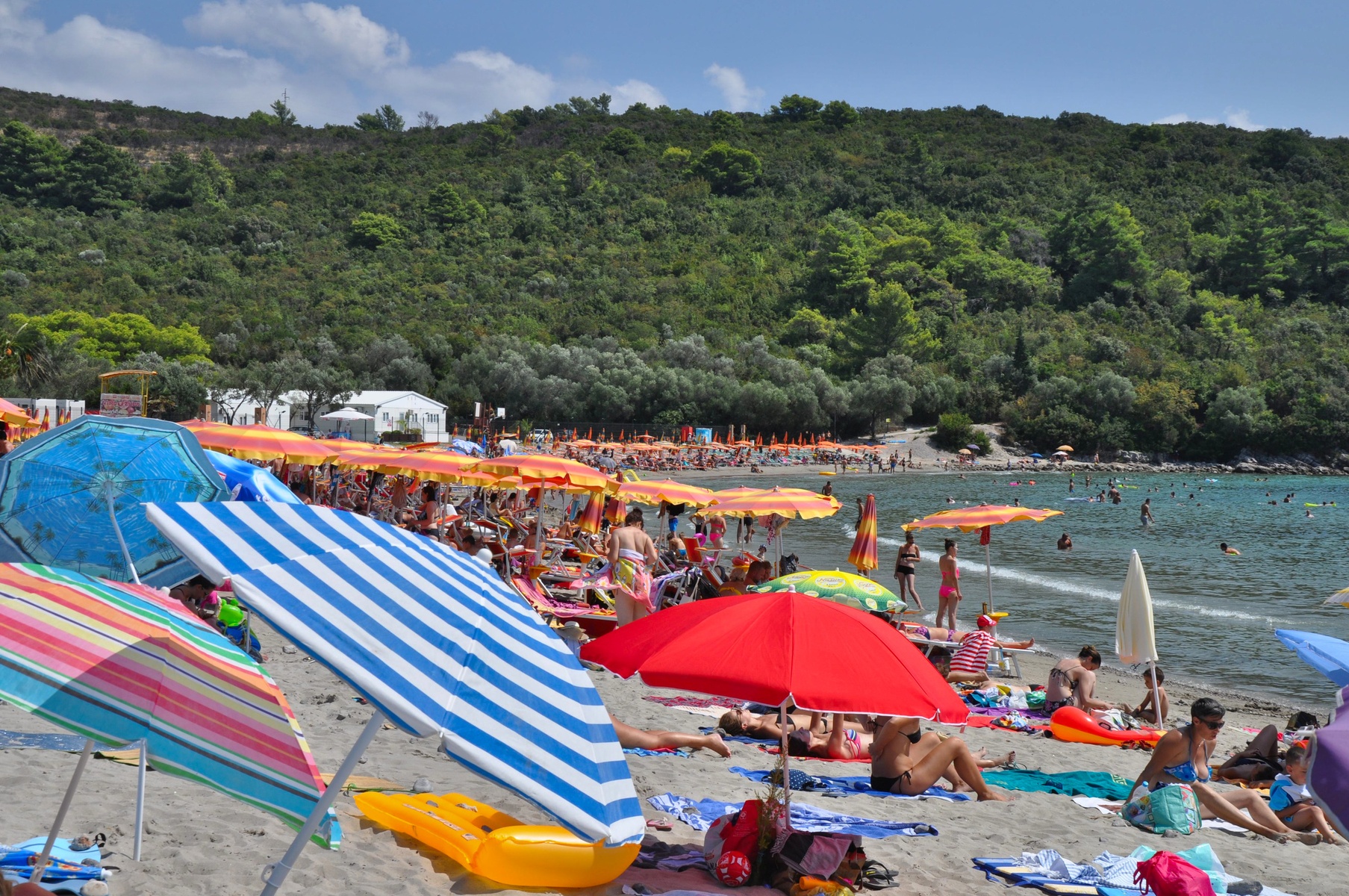 На Адриатике очень сложно найти песчаный пляж. Почти везде галька или камни. Зато часто сразу начинается глубина. На многих пляжах есть трамплины с которых можно нырять и про ужасные камни около берега можно не вспоминать вообще.