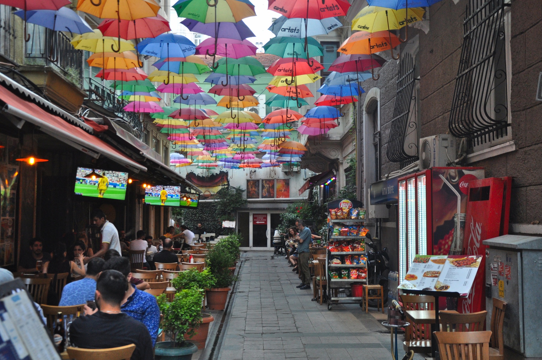 Улица Истикляль. Если в районе Султанхамета ближе к вечеру всё засыпает, то тут начинается самая движуха. Куча кафешек, какие-то дискотеки, толпы людей. На любителя. Но разок прогуляться поглазеть забавно.