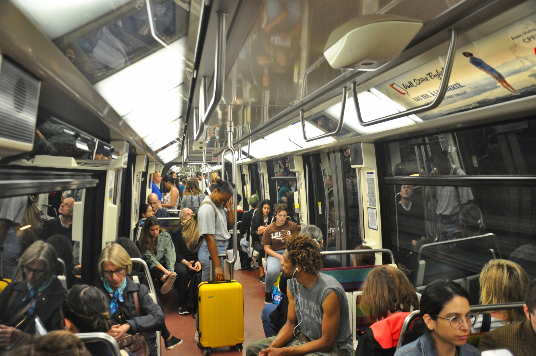 Людей обычно немного. Если только совсем в час пик не прийти. Но даже тогда на станциях очень свободно, но в поезд бывает протиснуться сложно, если сумок много.