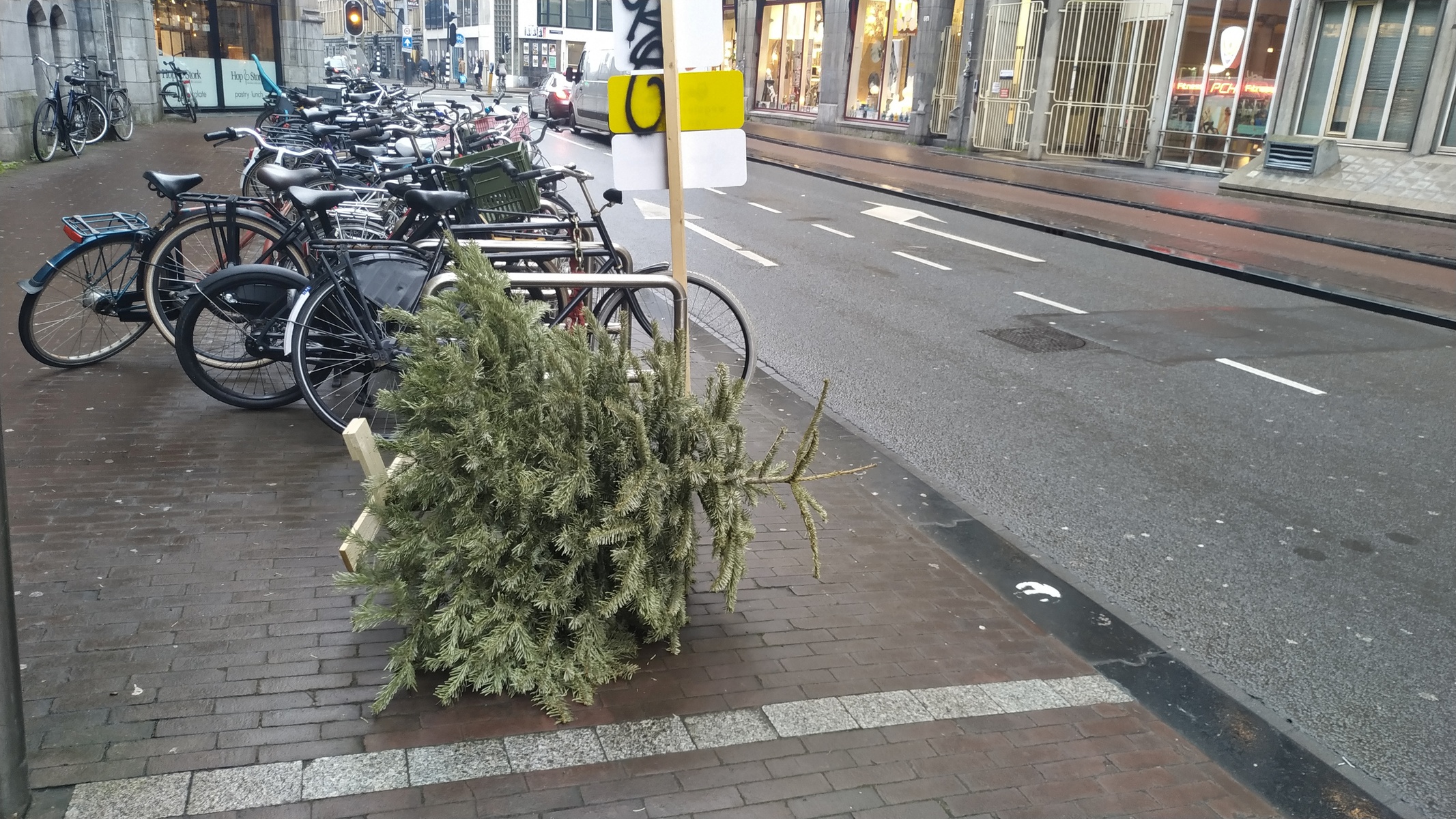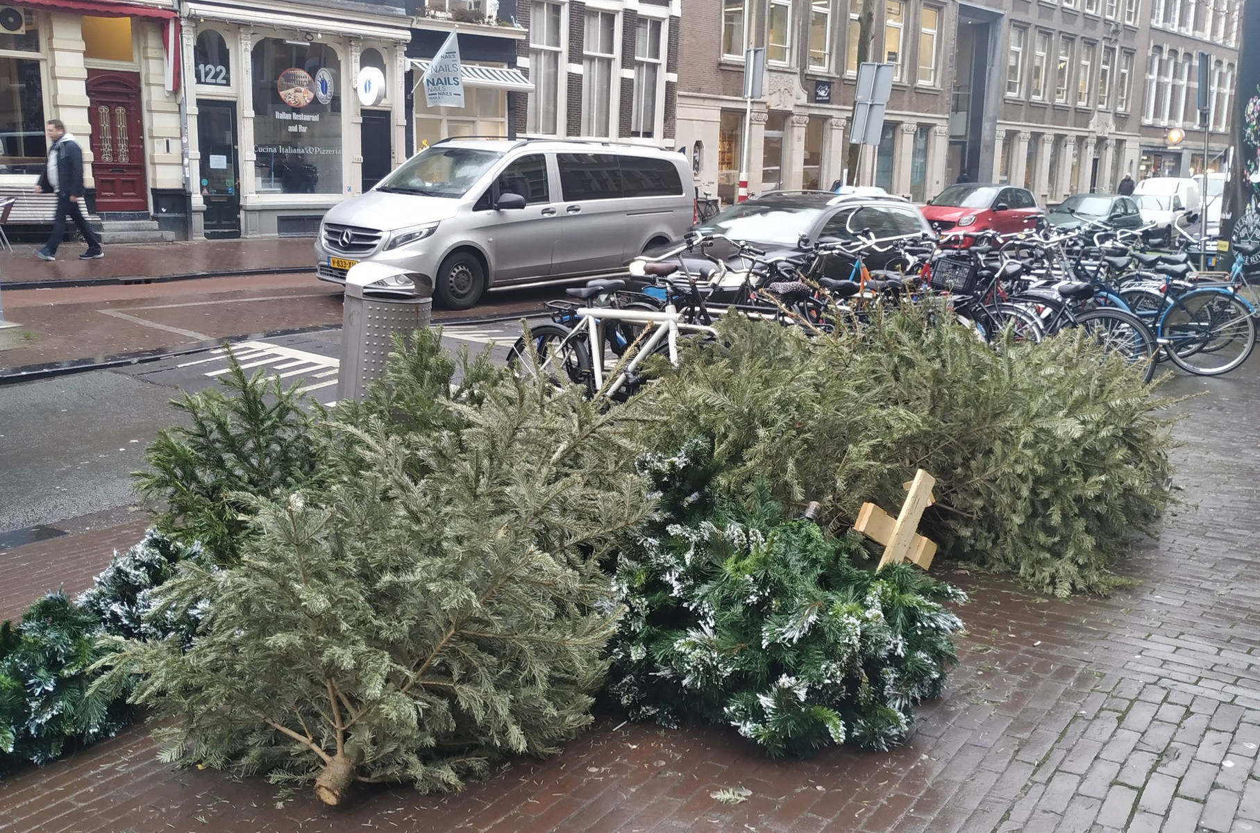 Как раз прошёл новый год и жители города выкидывают свои ёлки. Потом их уберут службы города.