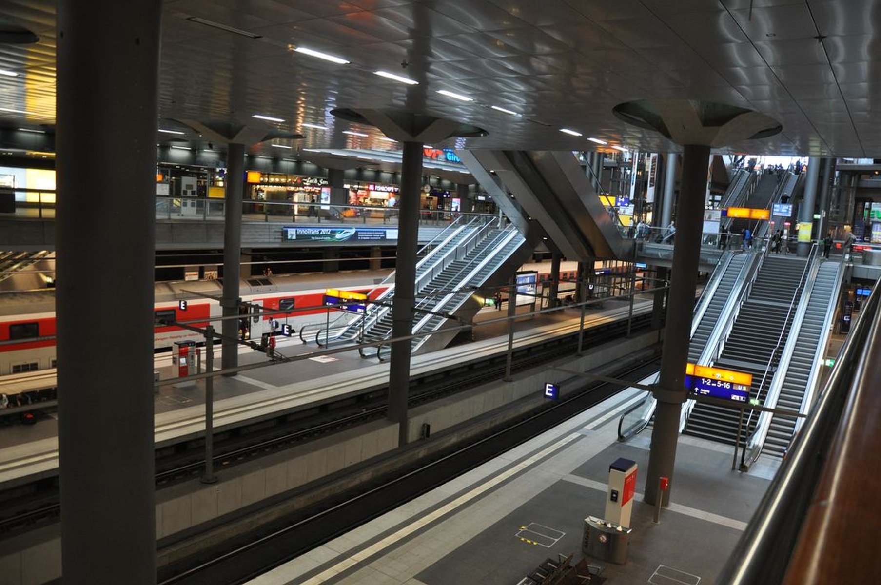 Приехал я в Берлин в восьмом часу и у меня было немного времени удивляться Берлинскому вокзалу. Он невероятно огромный, 5 (или 6?) уровней [но поезда ходят только на самом верхнем и на самом нижнем], всё вычищено до блеска, нет никаких толкучек.