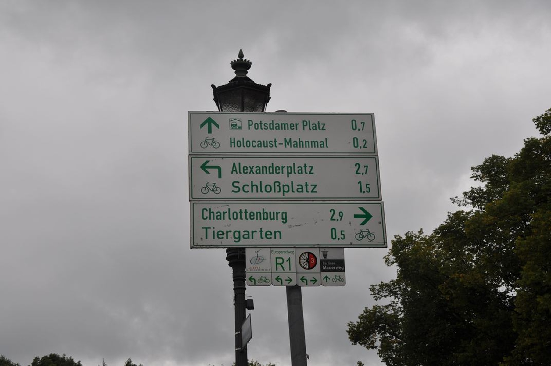 По городу носится несметное количество обзорных автобусов, битком набитых туристами. Терпеть не могу автобусные экскурсии, благо немцы настолько развили свой город для велосипедистов, что даже отдельные указатели для них повесили (а также свои светофоры и разметка).