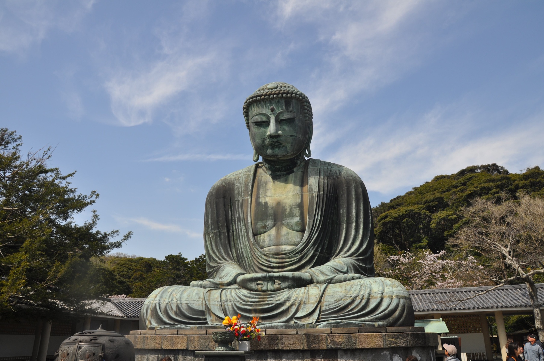 Там же, в Камакуре, располагается статуя Великого Будды, одна из трёх самых больших статуй Будды в Японии (за день до посещения, кстати, как раз был день рождения Будды, очень широко отмечаемый праздник, но с погодой в тот день явно не повезло). Бронзовая статуя высотой более 13 метров и весом около 121 тонны.