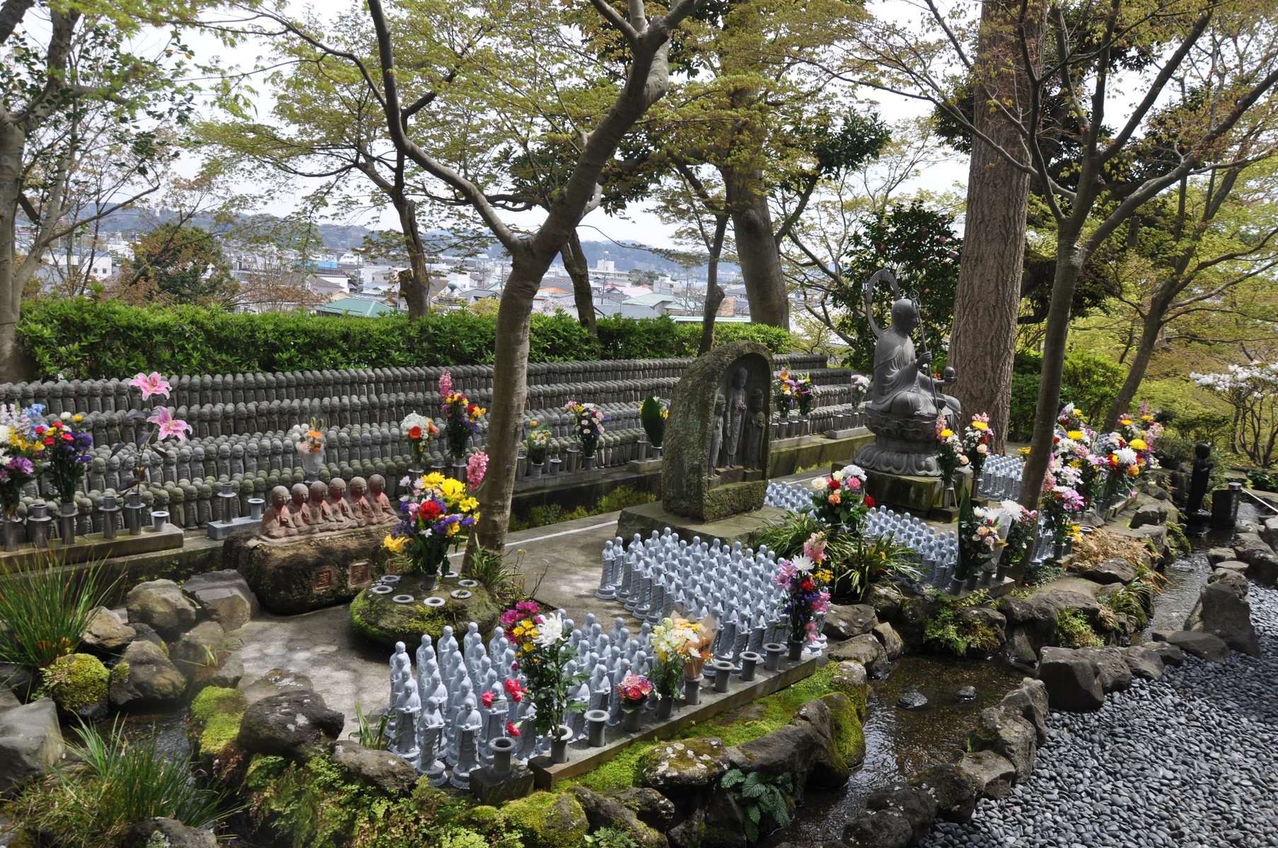 Первый храм по дороге - Хазе Дера. В нём просто невероятное количество небольших Jizo статуй (статуи, которые ставятся родителями в случае смерти ребёнка, выкидыша или аборта). Со времён второй мировой войны там было установлено более 50 тысяч статуй.