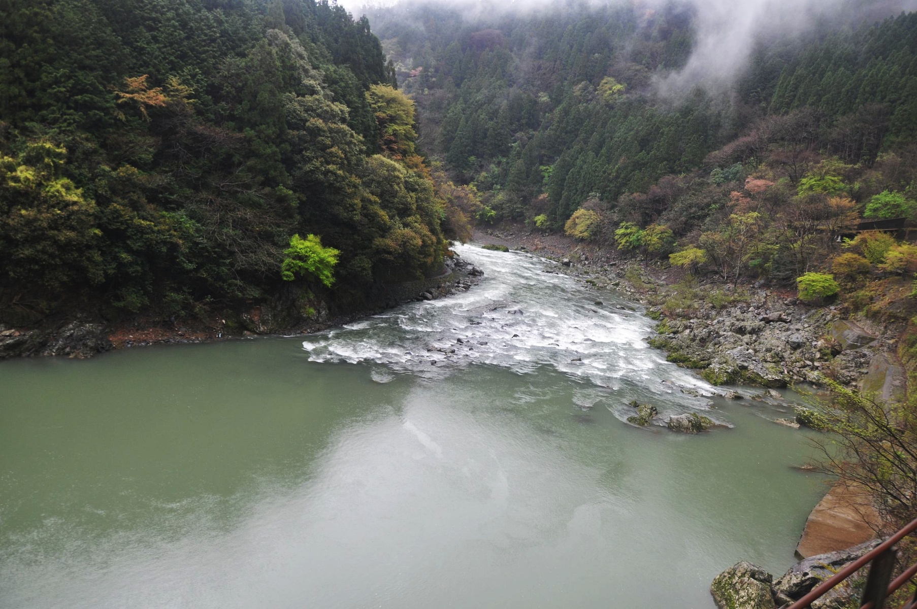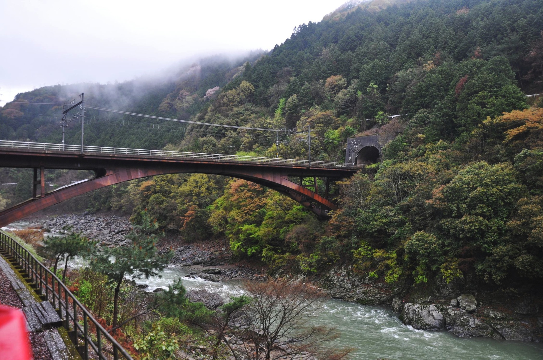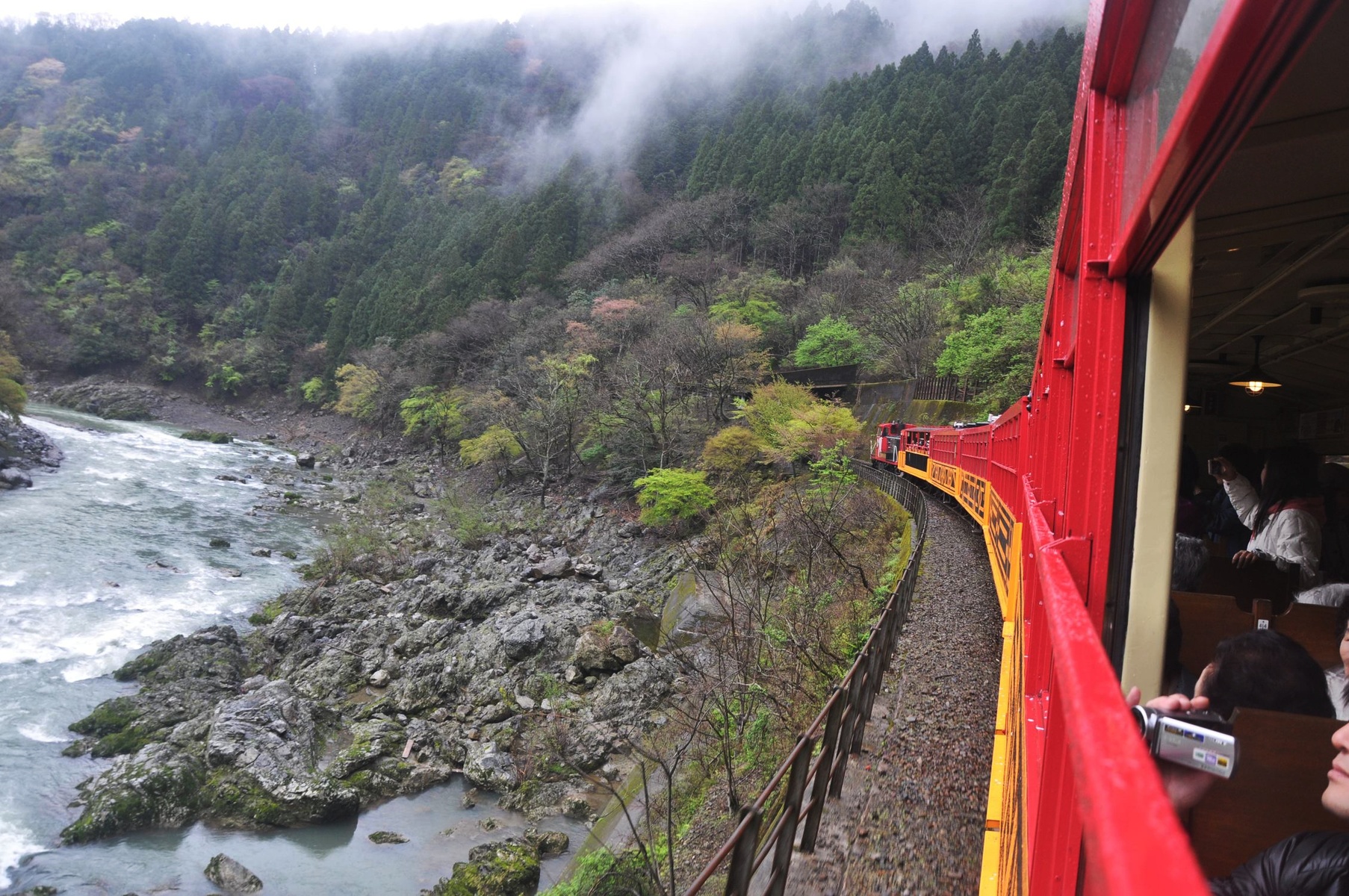 Но не только Киото богато достопримечательностями, но и его окрестности. Совсем недалеко есть невероятно живописная река, вдоль которой построили целую частную железную дорогу (целых полчаса в пути) и возят любопытных туристов. Да и местные не прочь покататься.