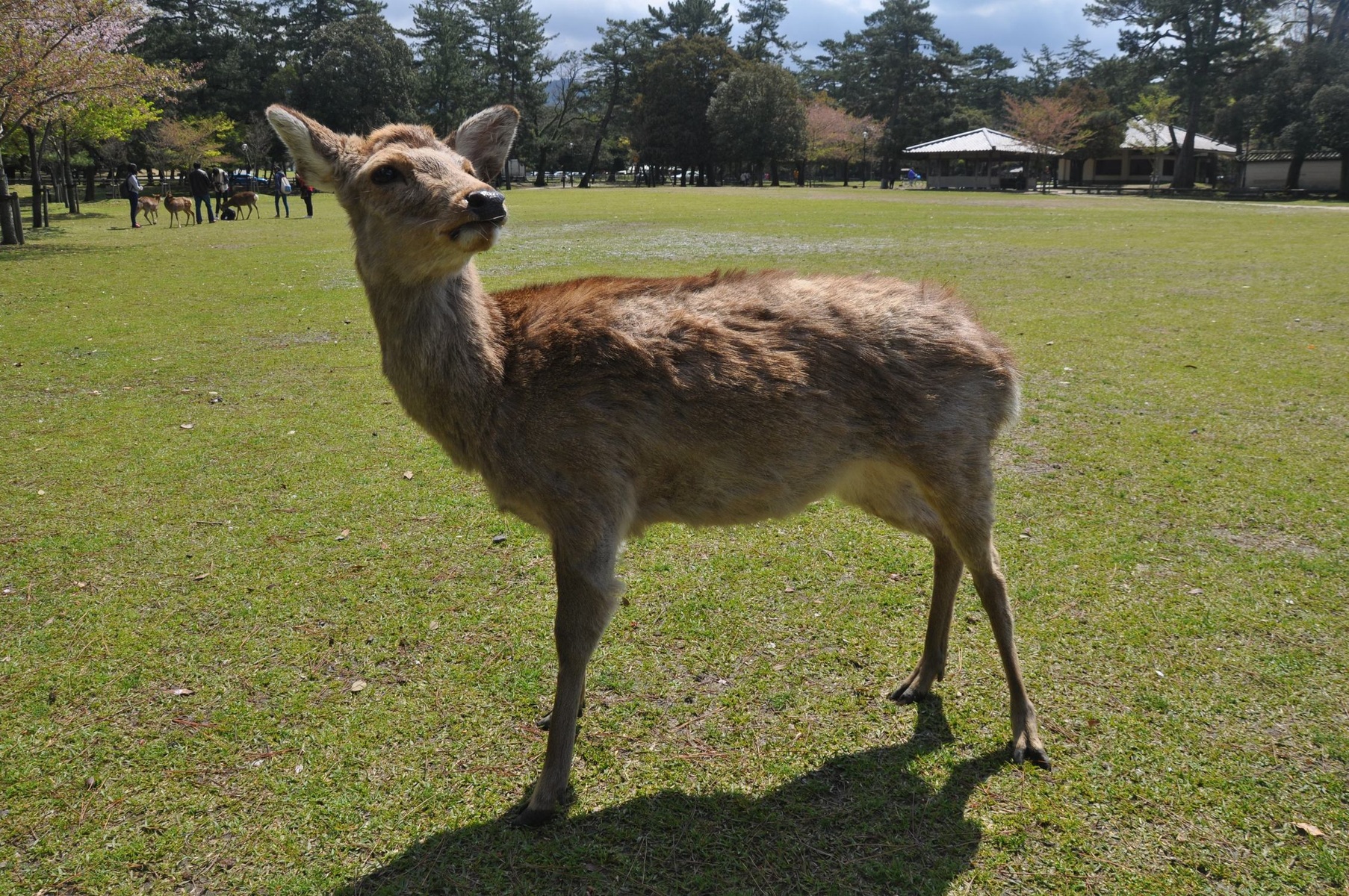 Нара - это город оленей. Они просто живут посреди города, совсем не боятся людей, а особо наглые даже кусаются и бодаются. Всё потому, что туристы слишком избаловали их печеньками и фотографиями. Рядом с популярными скоплениями животных, которые лежат на самых проходных туристических тропах, всегда можно найти людей, продающих печеньки для оленей. Каких-то 150 йен и можно покормить голодающих животных. Некоторые ведут себя чрезвычайно слишком нагло, поэтому приходилось проводить разъяснительные беседы (: