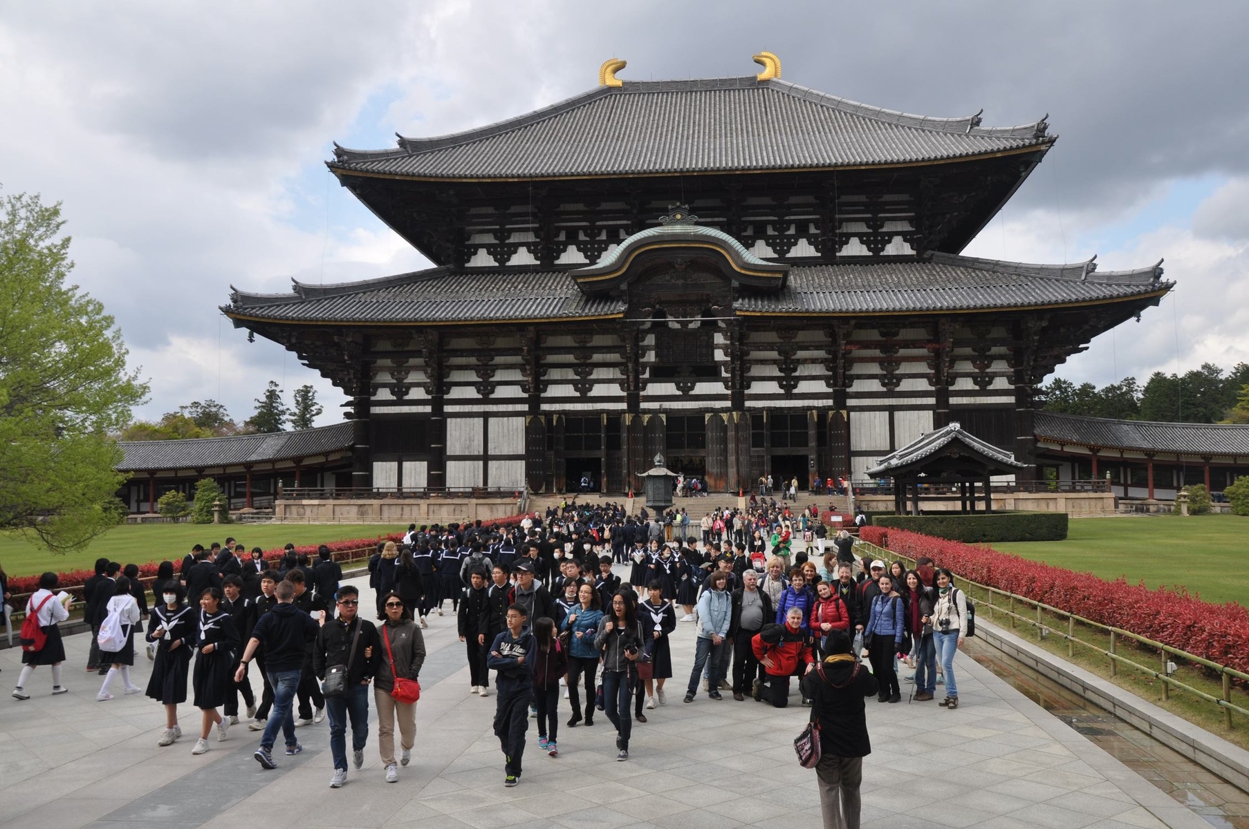 Тут же располагается огромная статуя Будды высотой более 16 метров. Но, в отличии от Камакуры, здесь вокруг Будды построили ещё и храм, поэтому памятник сидит не на улице. Сразу привлекает внимание огромное количество школьников. Вообще после такого количества детей на улицах у меня закрадываются сомнения, что Япония - стареющая нация.