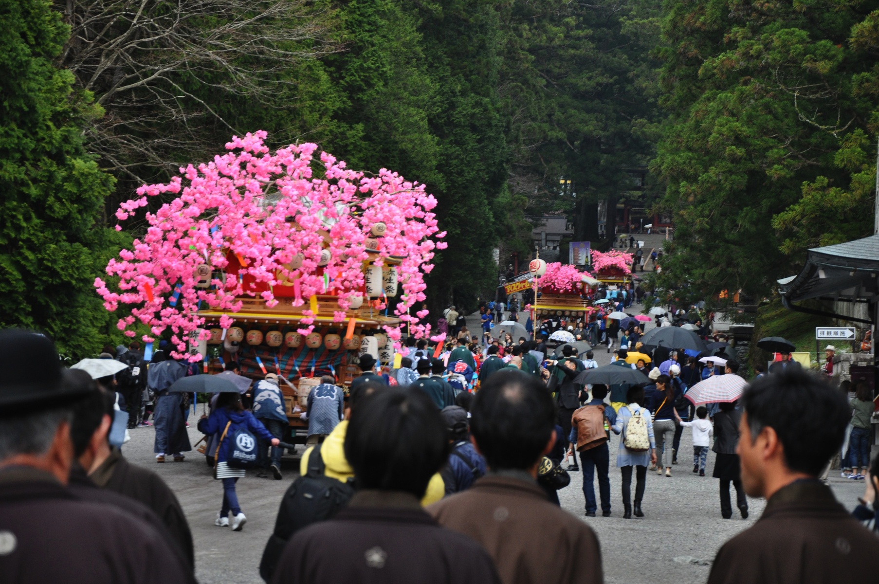 Началось всё с осмотра храма Toshugu, где как всегда были уже привычные толпы школьников. Но нам повезло и помимо школьников мы увидели праздничное шествие приуроченное к цветению сакуры.