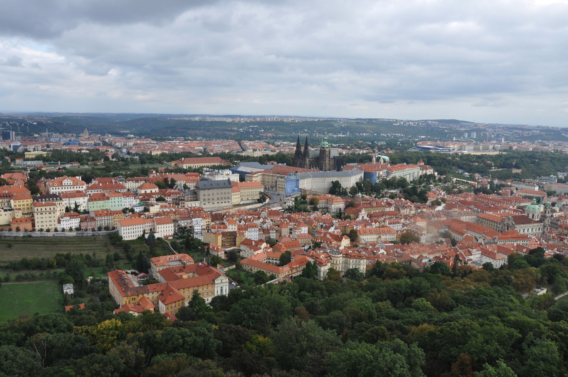 Эта часть очень холмистая и отсюда открывается отличный вид на город. А если забраться на Петринскую башню, то просто обзор с высоты птичьего полёта. Подняться наверх обычно можно на фуникулере, но, разумеется, мне повезло, и на время моего визита фуникулер закрыли на ремонт. Так что подниматься пришлось пешком. А в башне я решил сэкономить на лифте и для полноты ощущений подняться пешком. К концу лестницы я даже начал сомневаться, что возможно не стоило жадничать (: