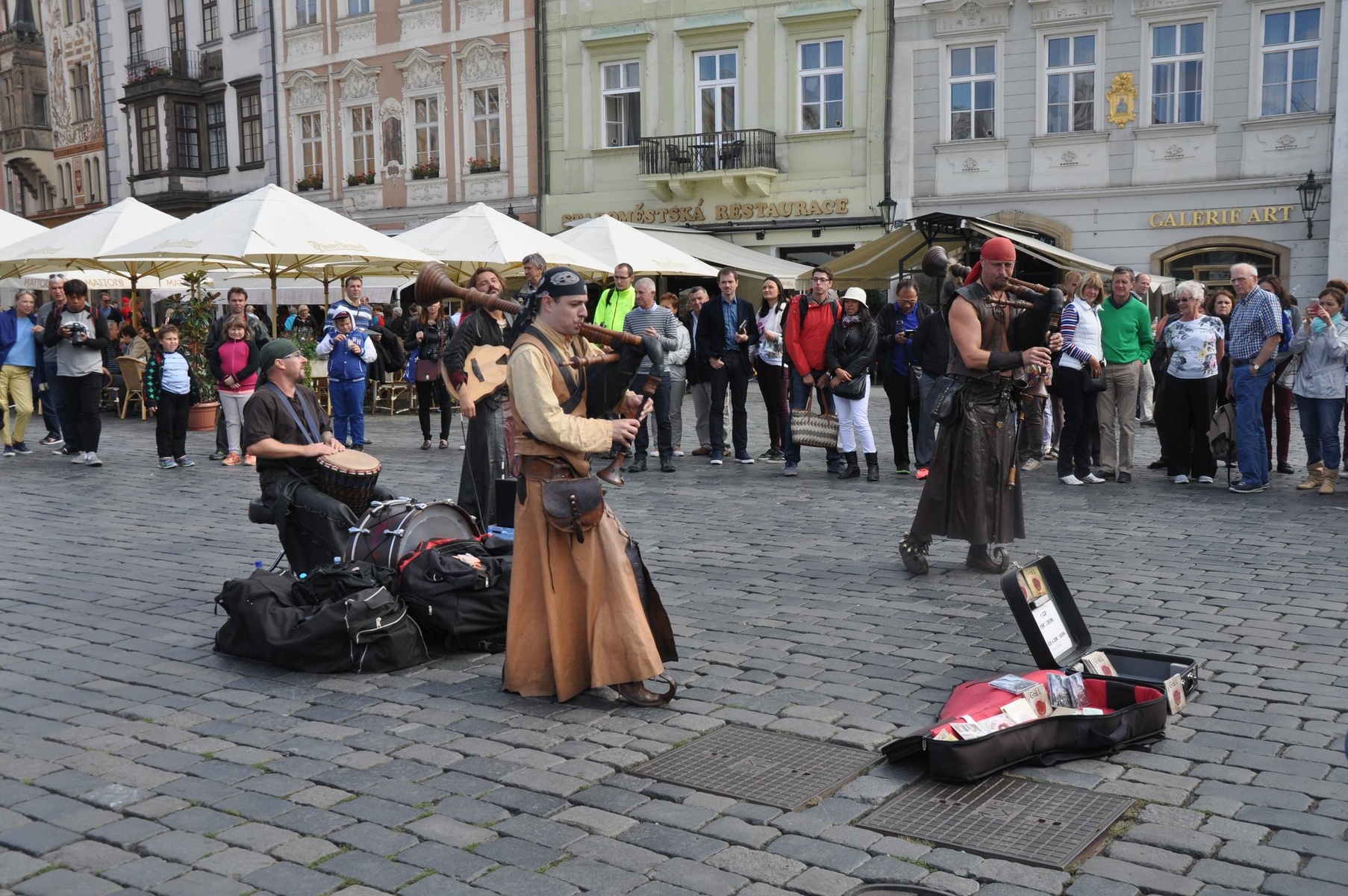 Уличные музыканты и артисты пытаются разными способами заработать немного денег. Тут всё как обычно.