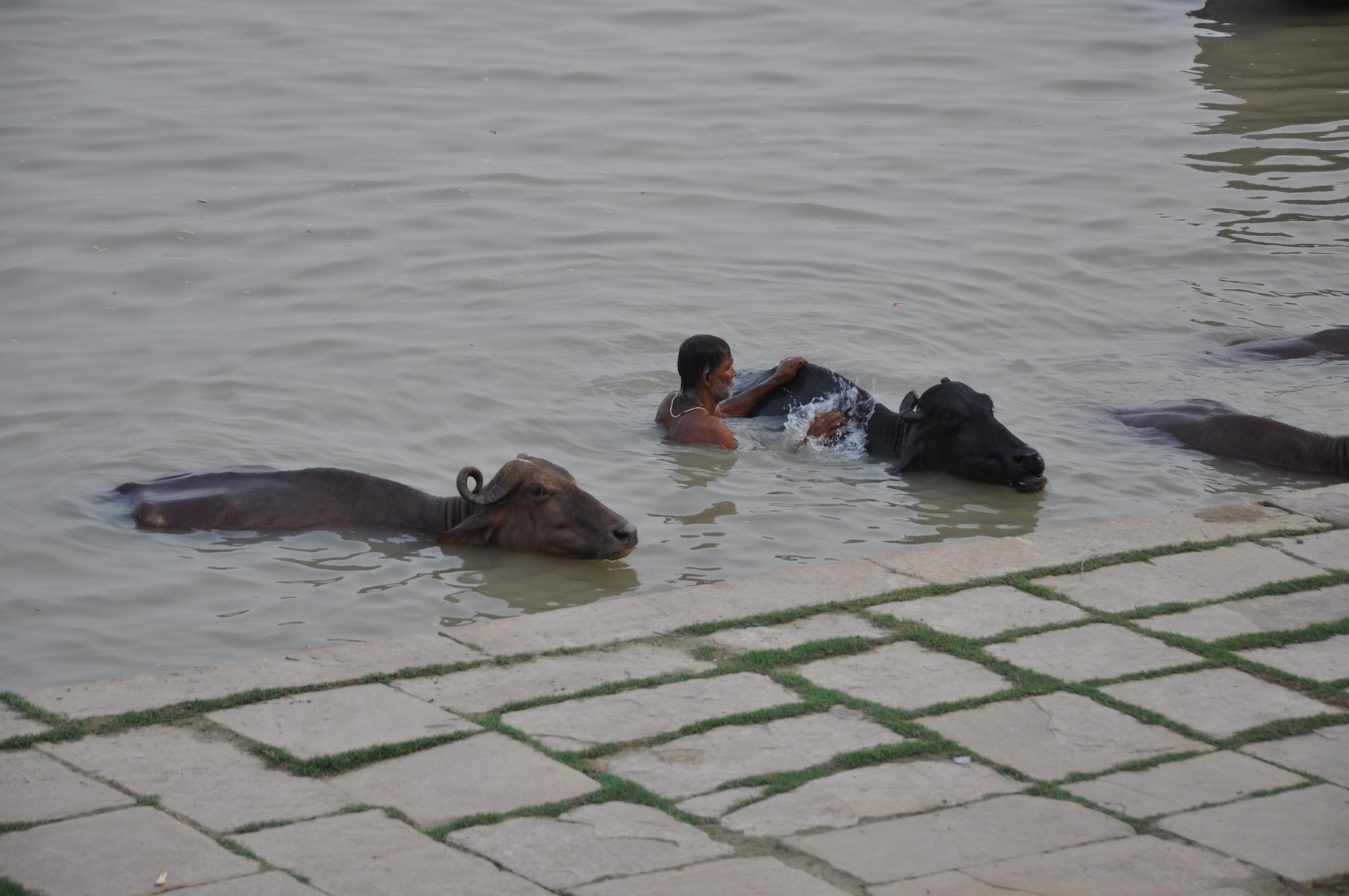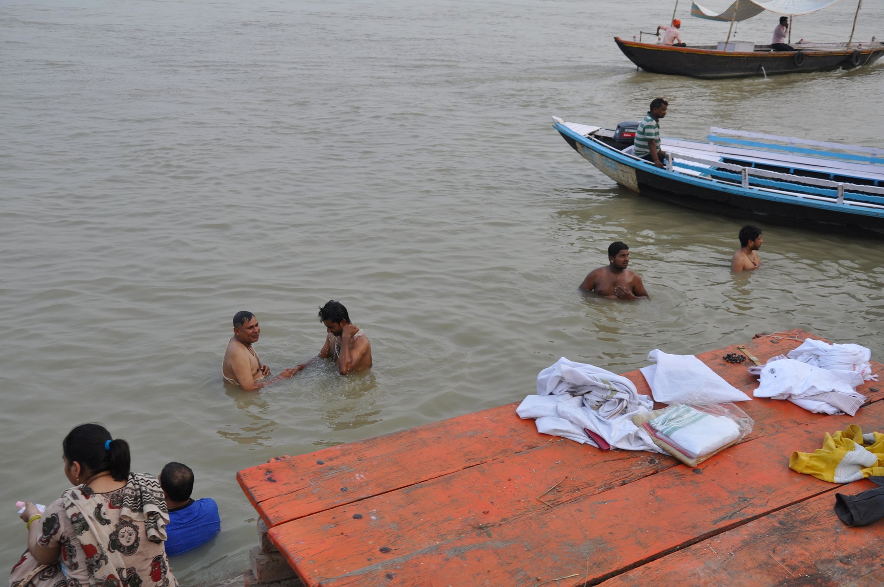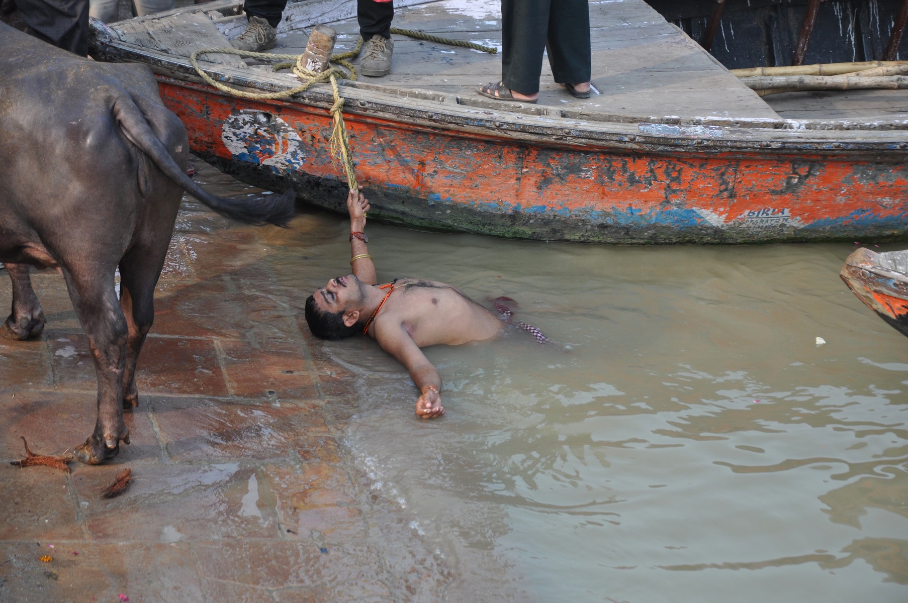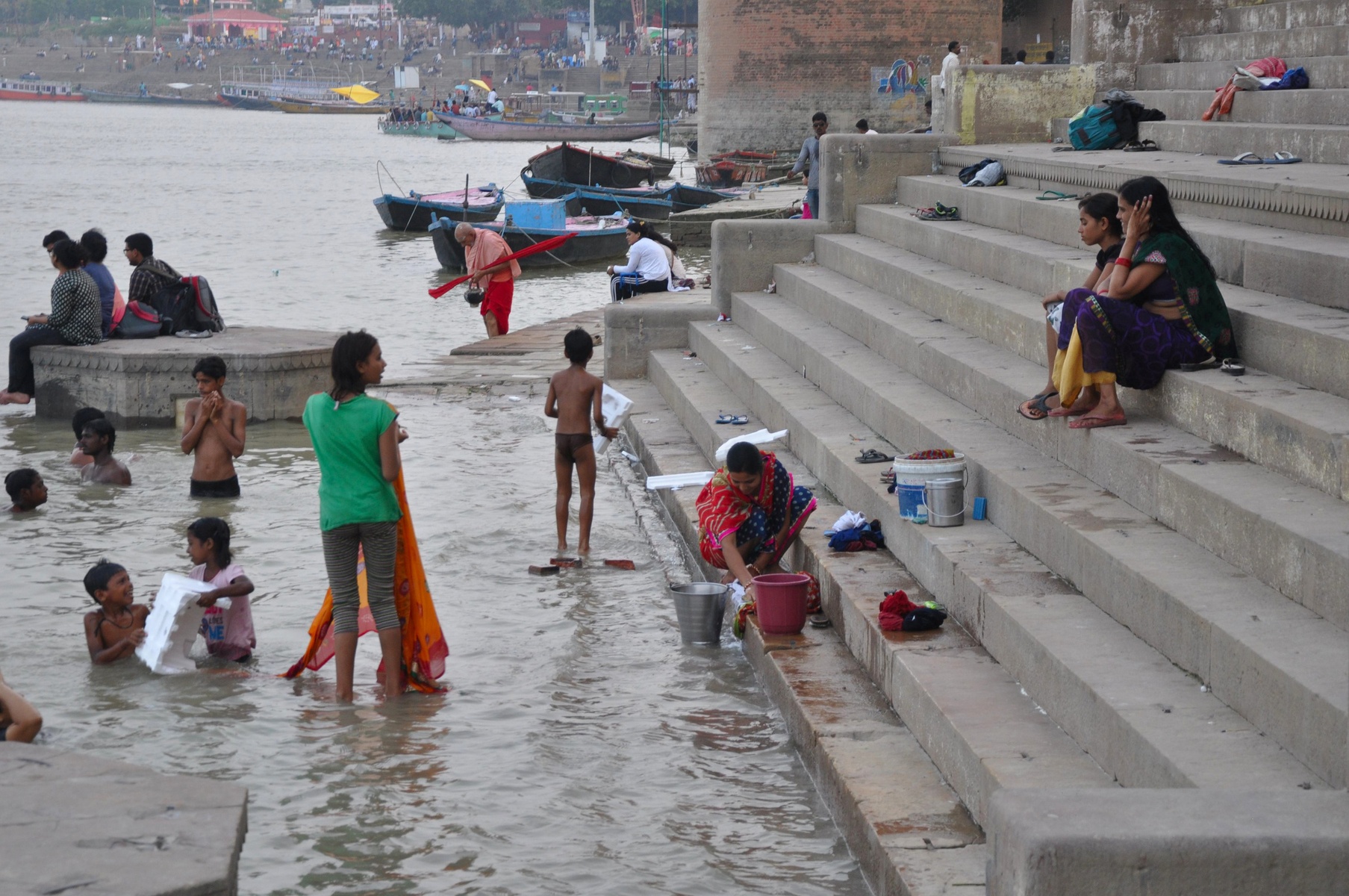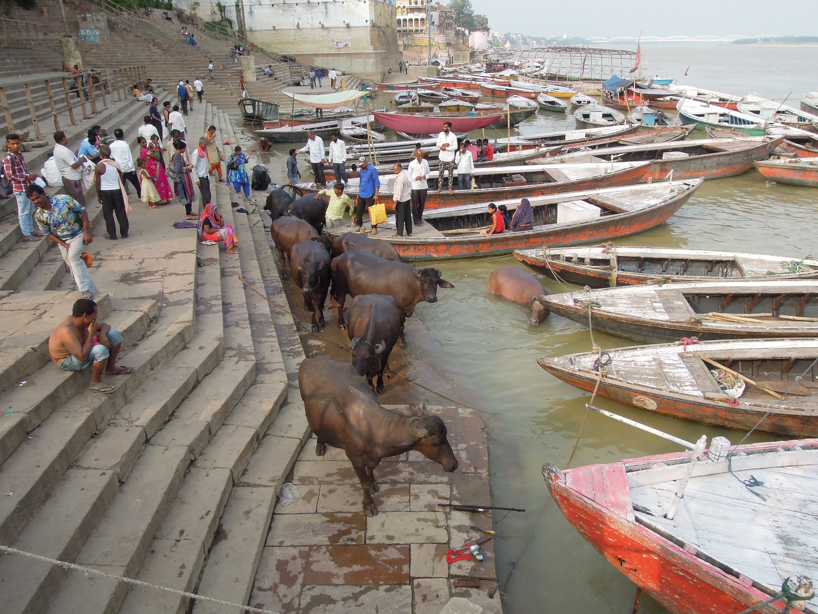 В этой реке люди делают все на свете: купаются, моются, стирают одежду, купают буйволов, омывают покойников и даже набирают воду в чайники.