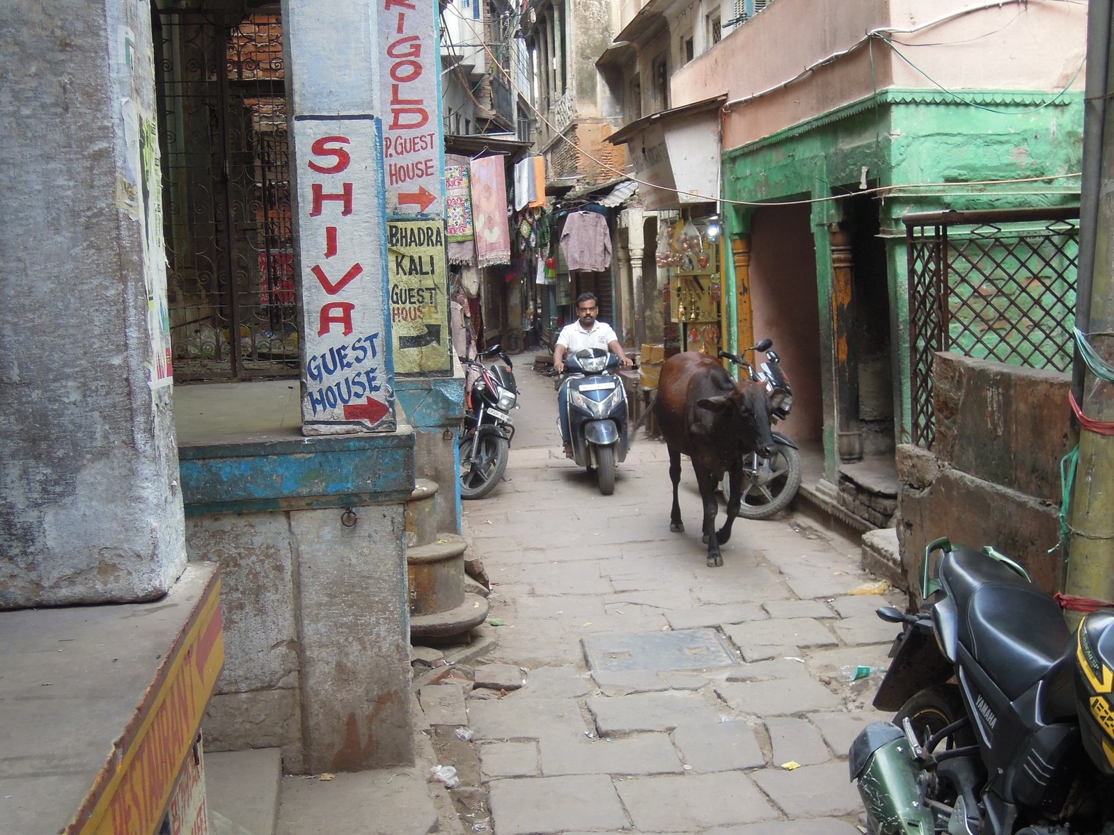 Если чуть отойти от реки, то там лабиринт из очень узких улочек. Там с трудом два пешехода разойдутся, а у них по этим улочкам помимо пешеходов ездят на мопедах (!) и ходят толпами коровы (которые оставляют за собой определенные следы). Так что ходить там нужно очень аккуратно. Особенно вечером в темноте.